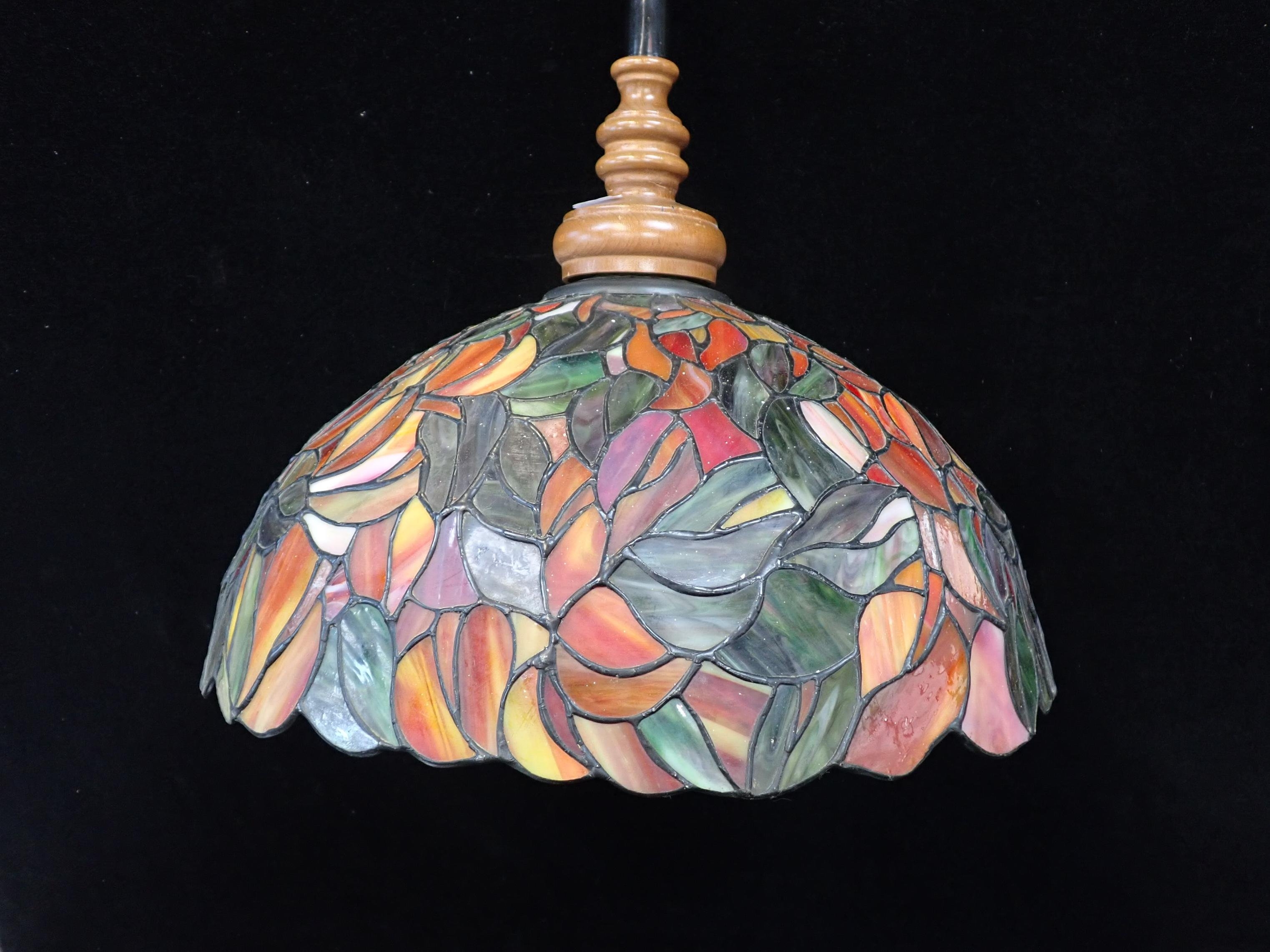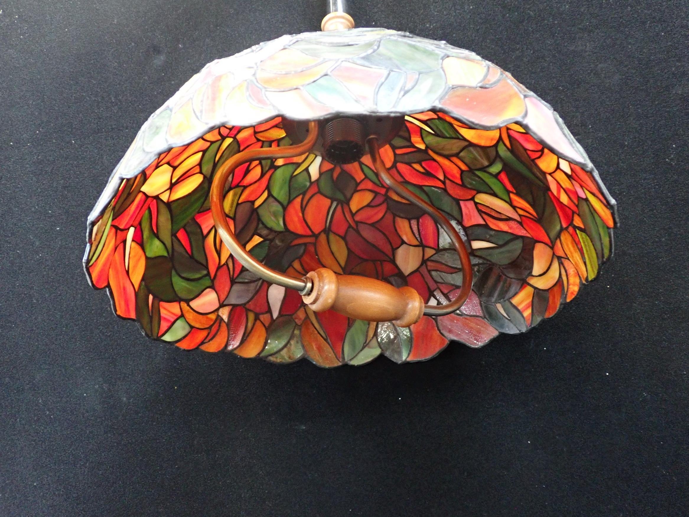 with turned fittings and rise and fall action, 42cm dia (untested, hanging mechanism defective)