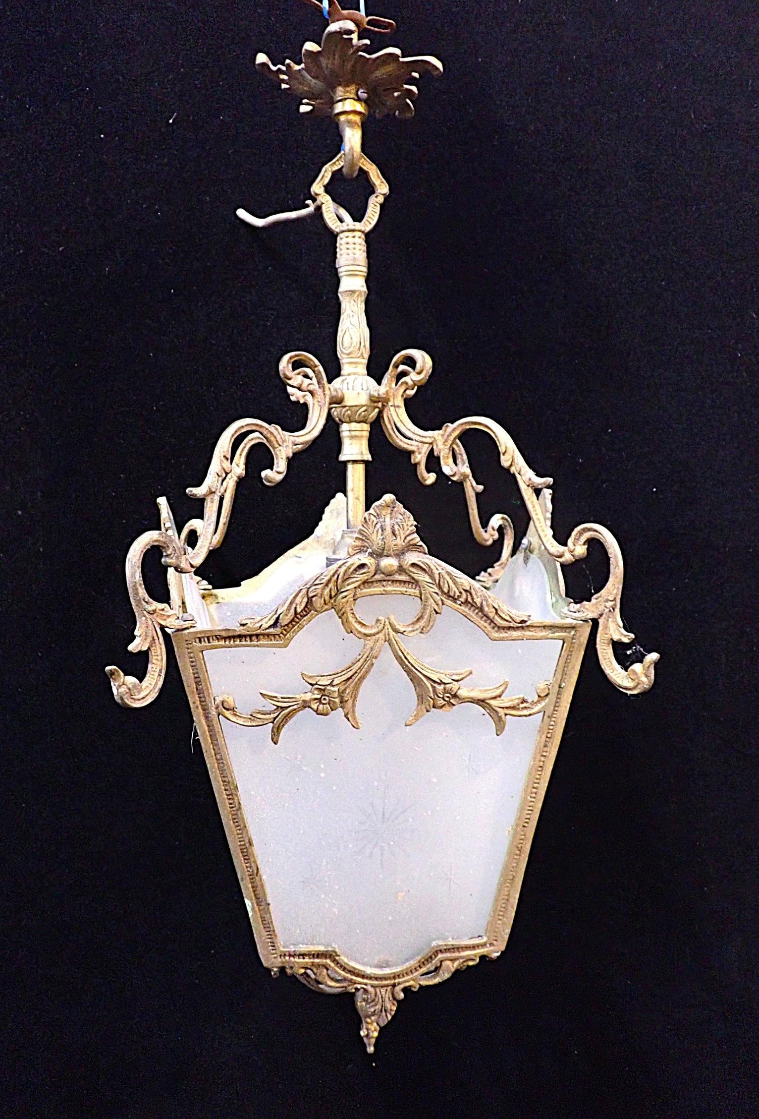 with frosted glass panels, 55cm long including hook and ceiling rose