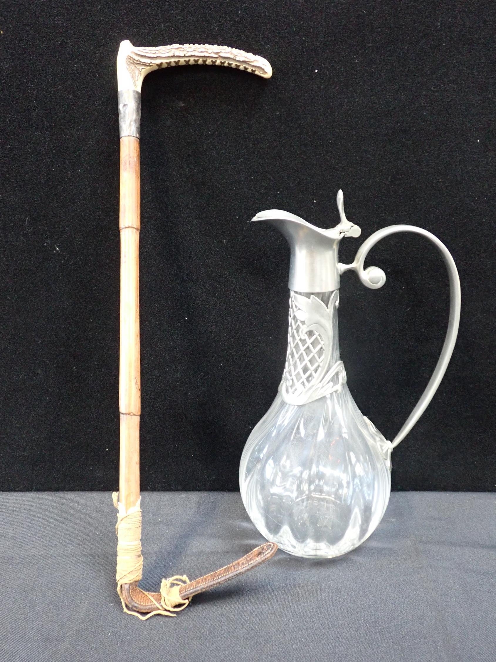and a pewter mounted claret jug by Les Potstainier Hutois (2)