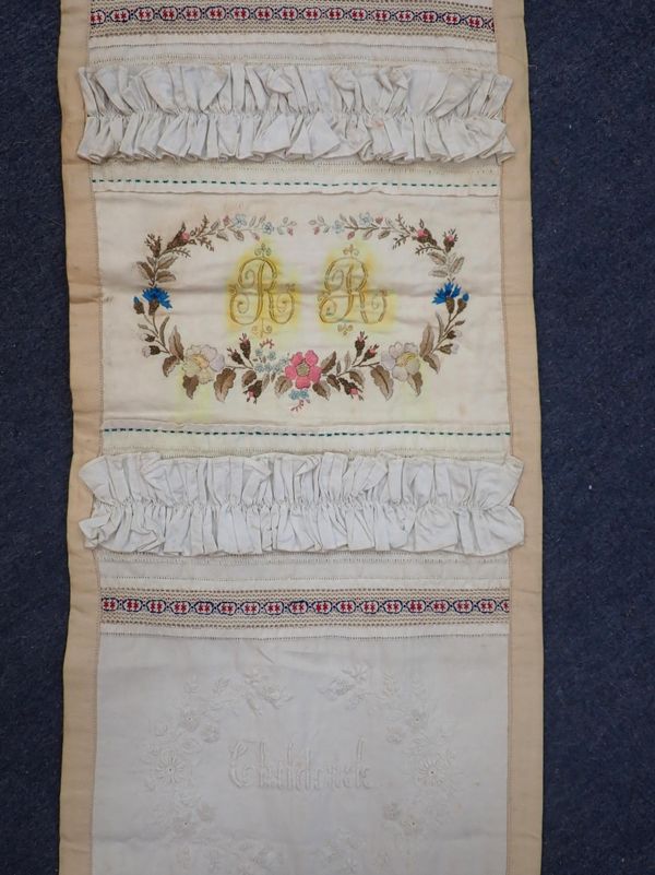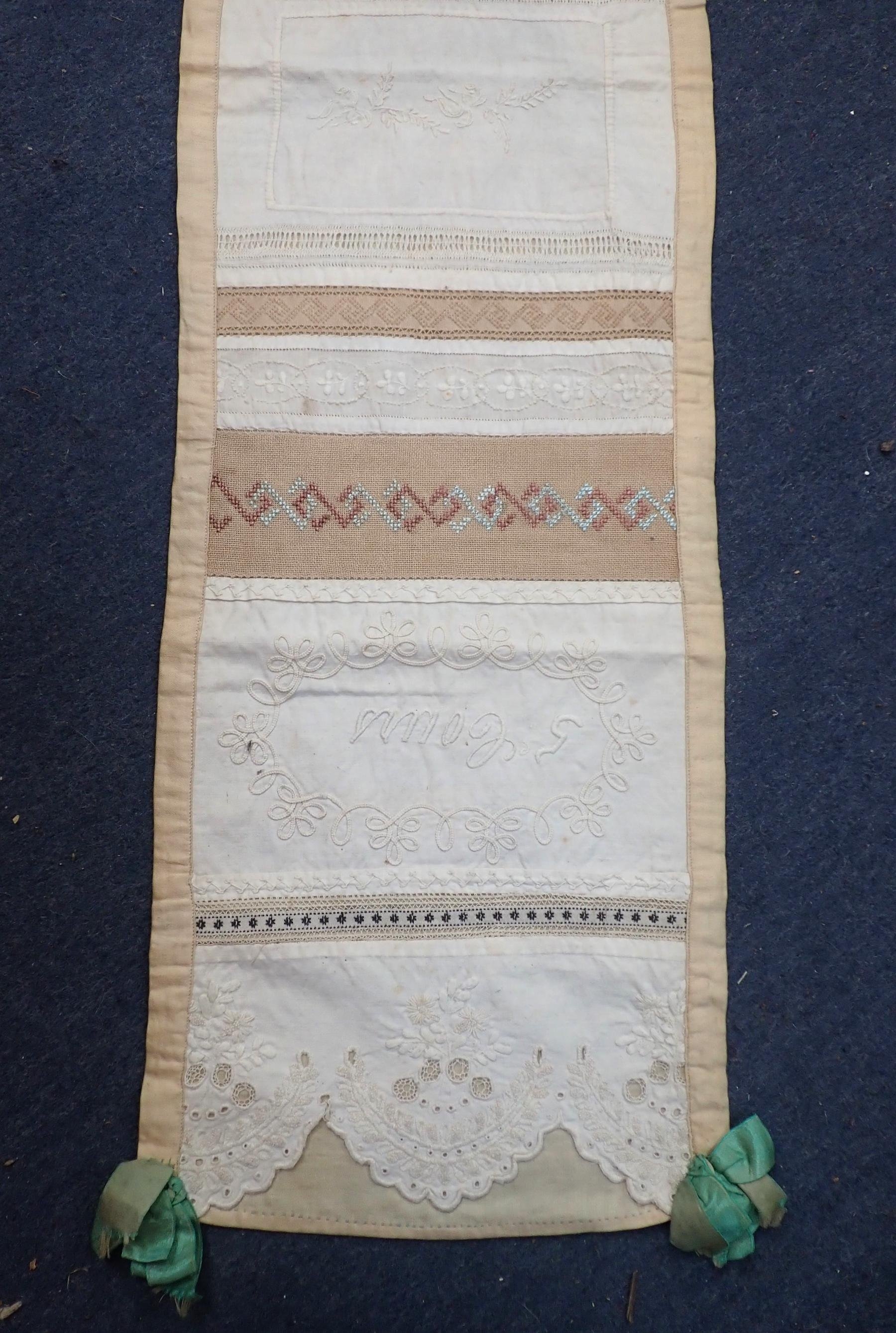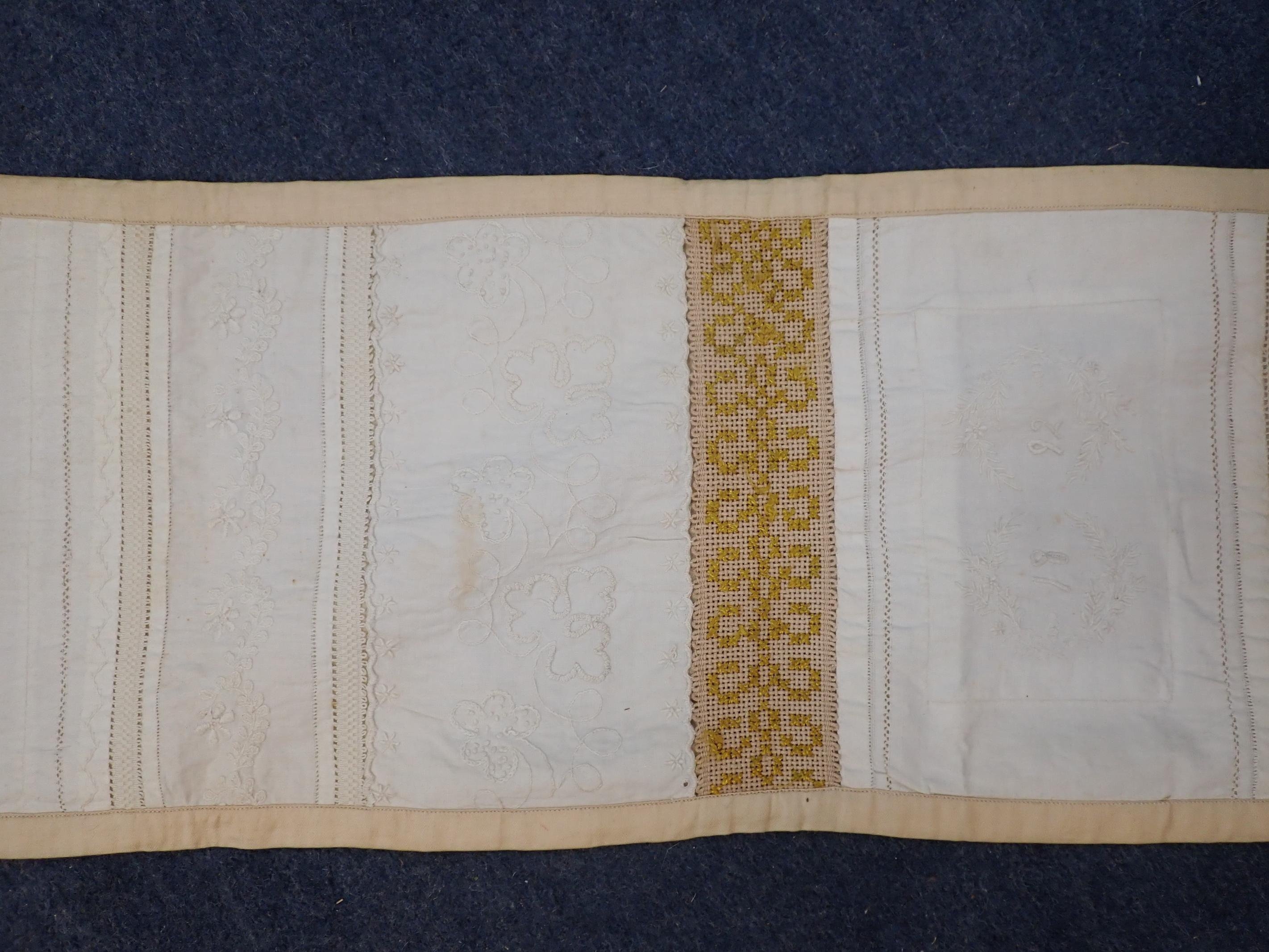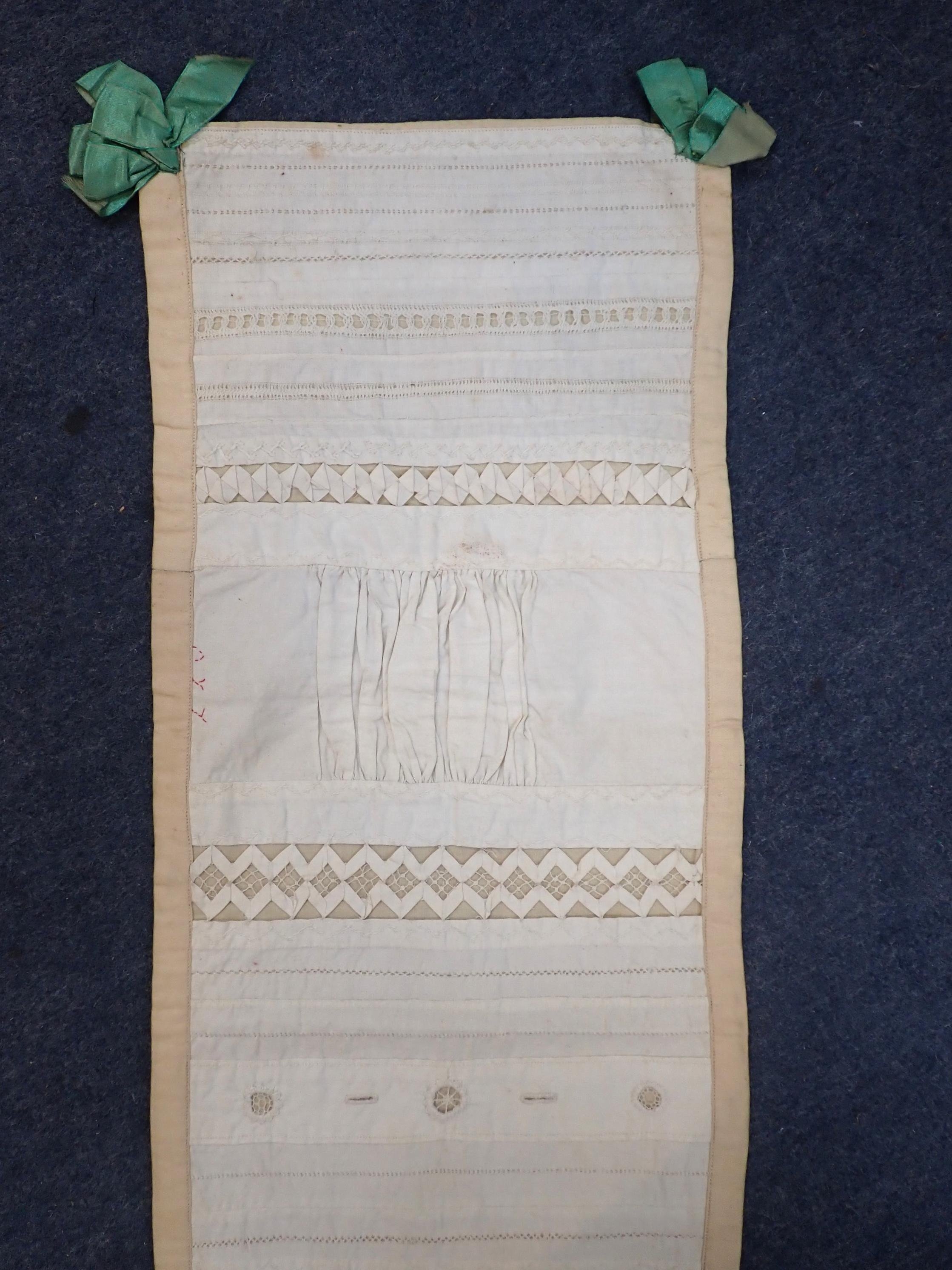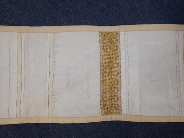 24cm wide, 204cm long, two pieces of Rajasthan decorated fabric (in paper wrapper), lace and other items