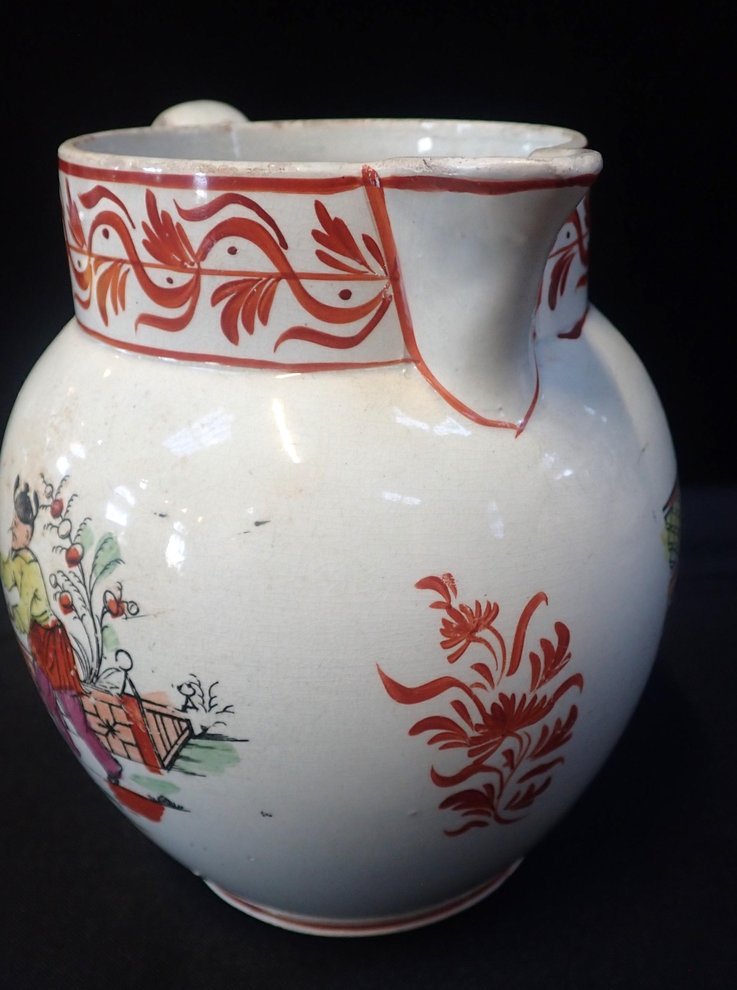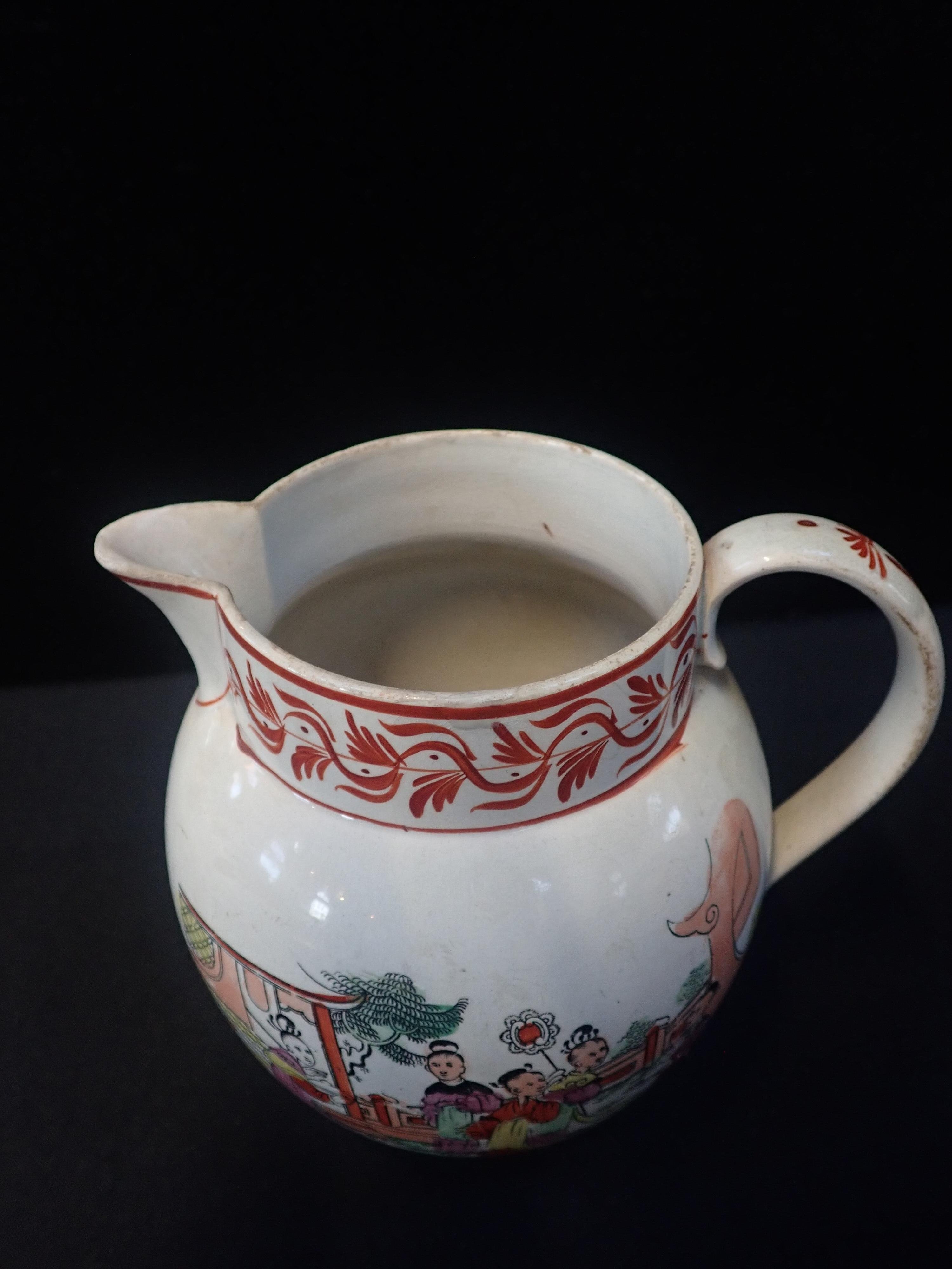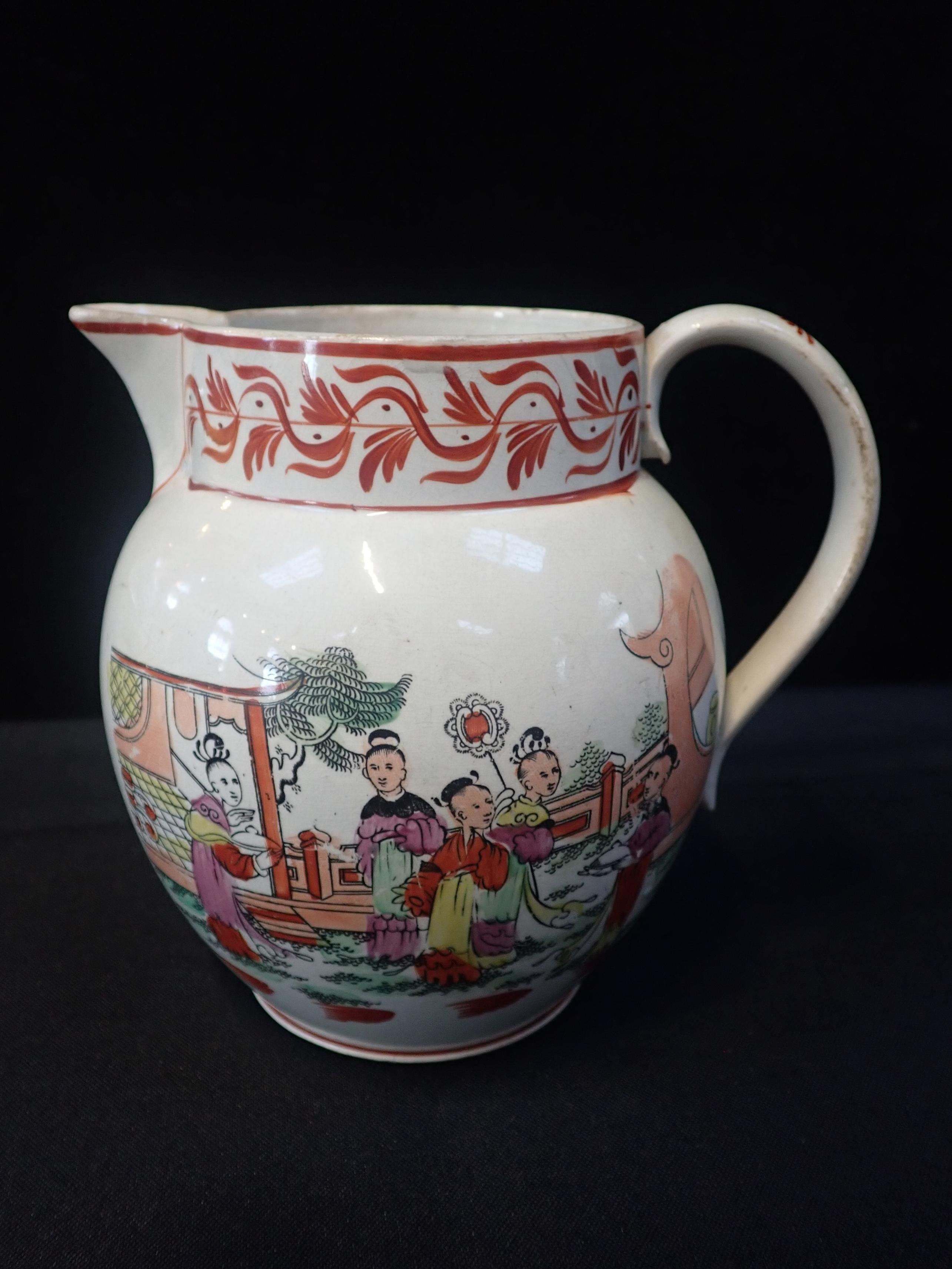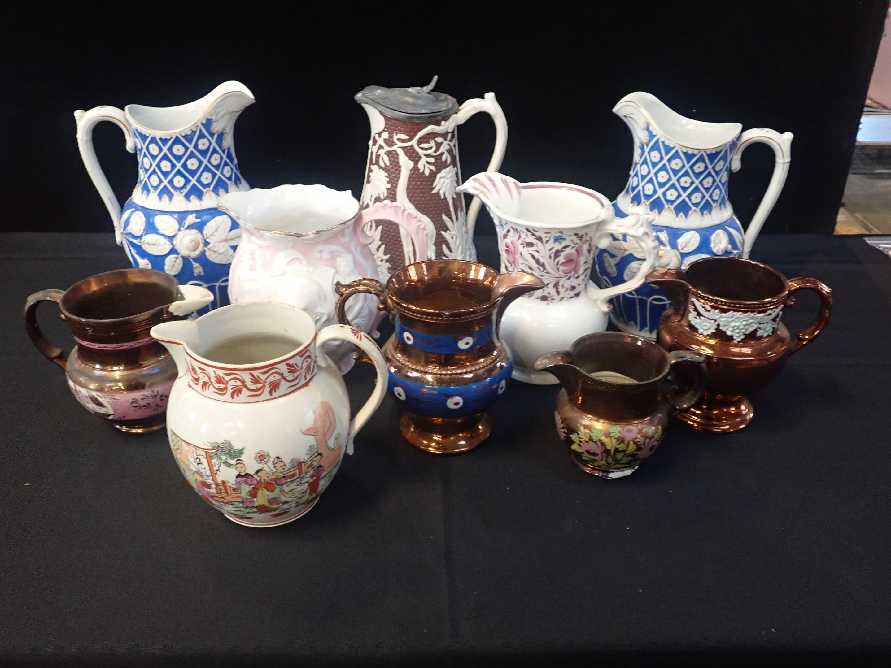 with Chinoiserie decoration, with other Victorian lustre and moulded jugs, including a later Foley Shakespeare one