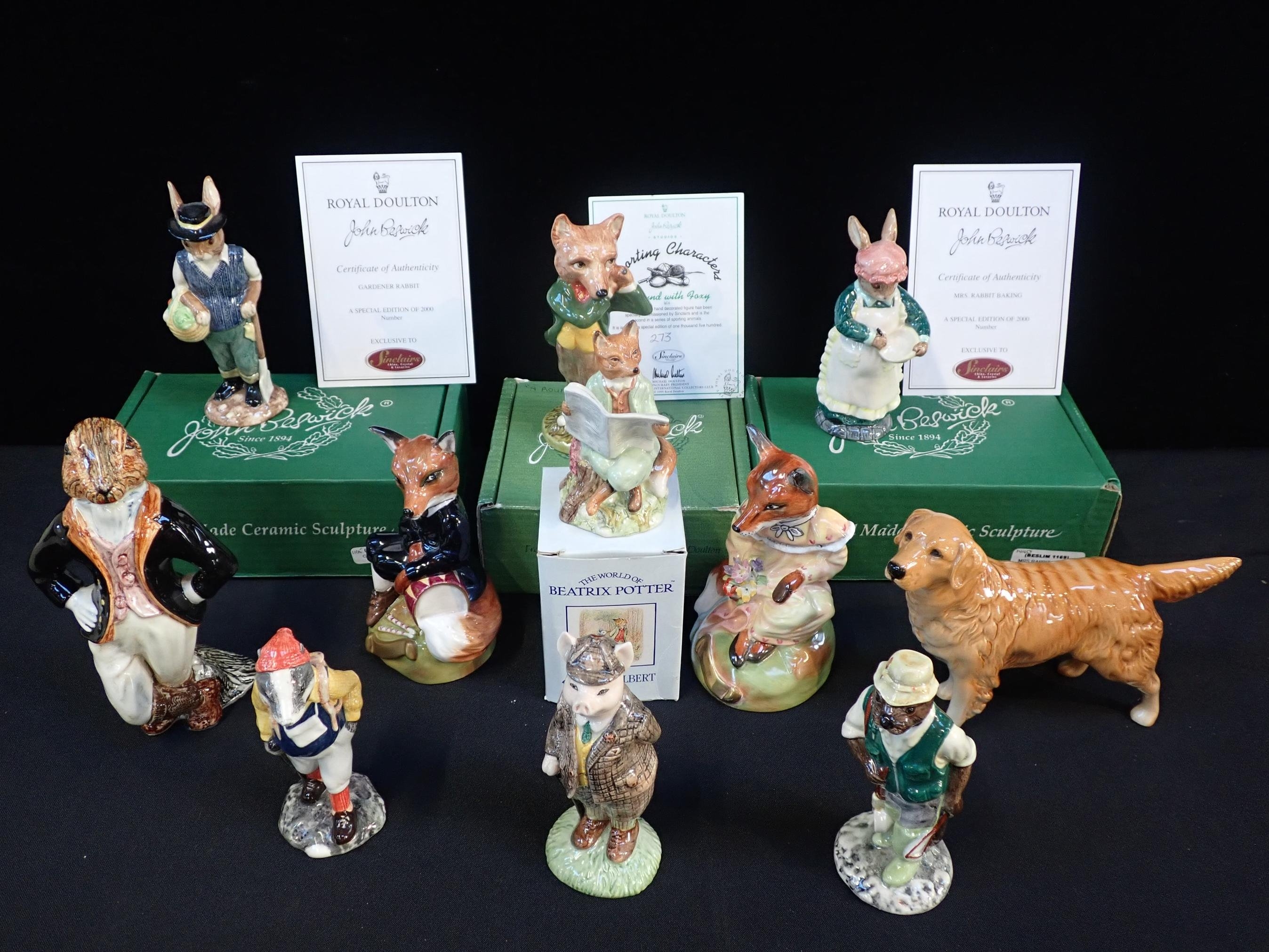boxed limited edition, with certificates, with a boxed Royal Albert 'Foxy reading', three unboxed Beswick figures, a Beswick dog, two Bloor China foxes, and an unmarked rabbit (11)