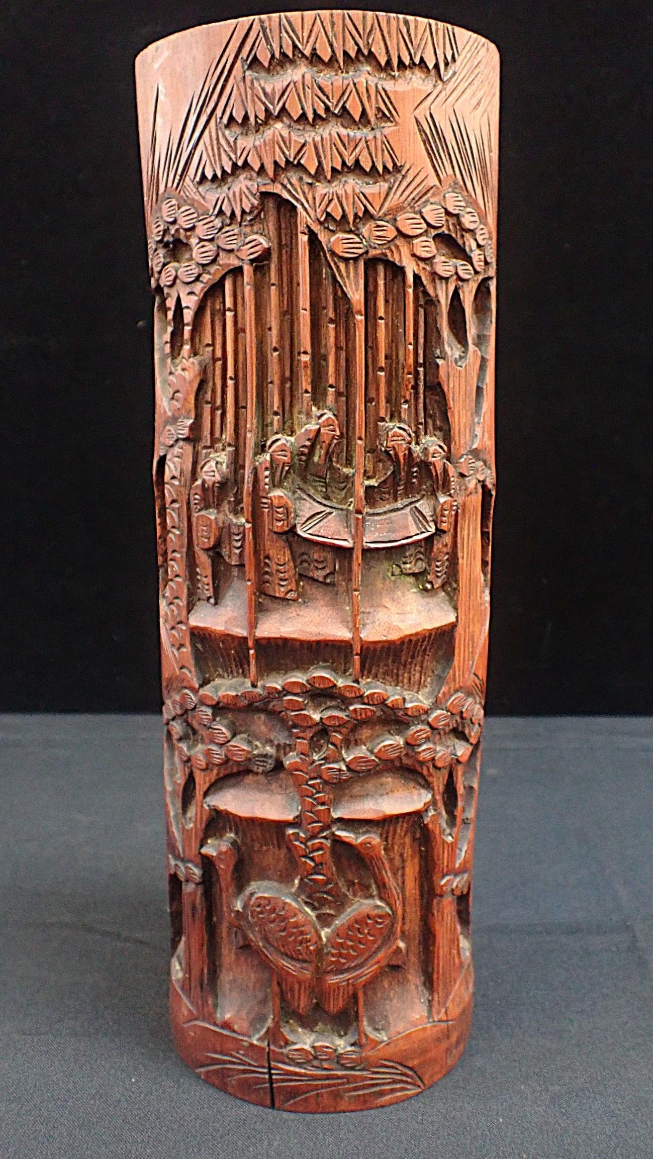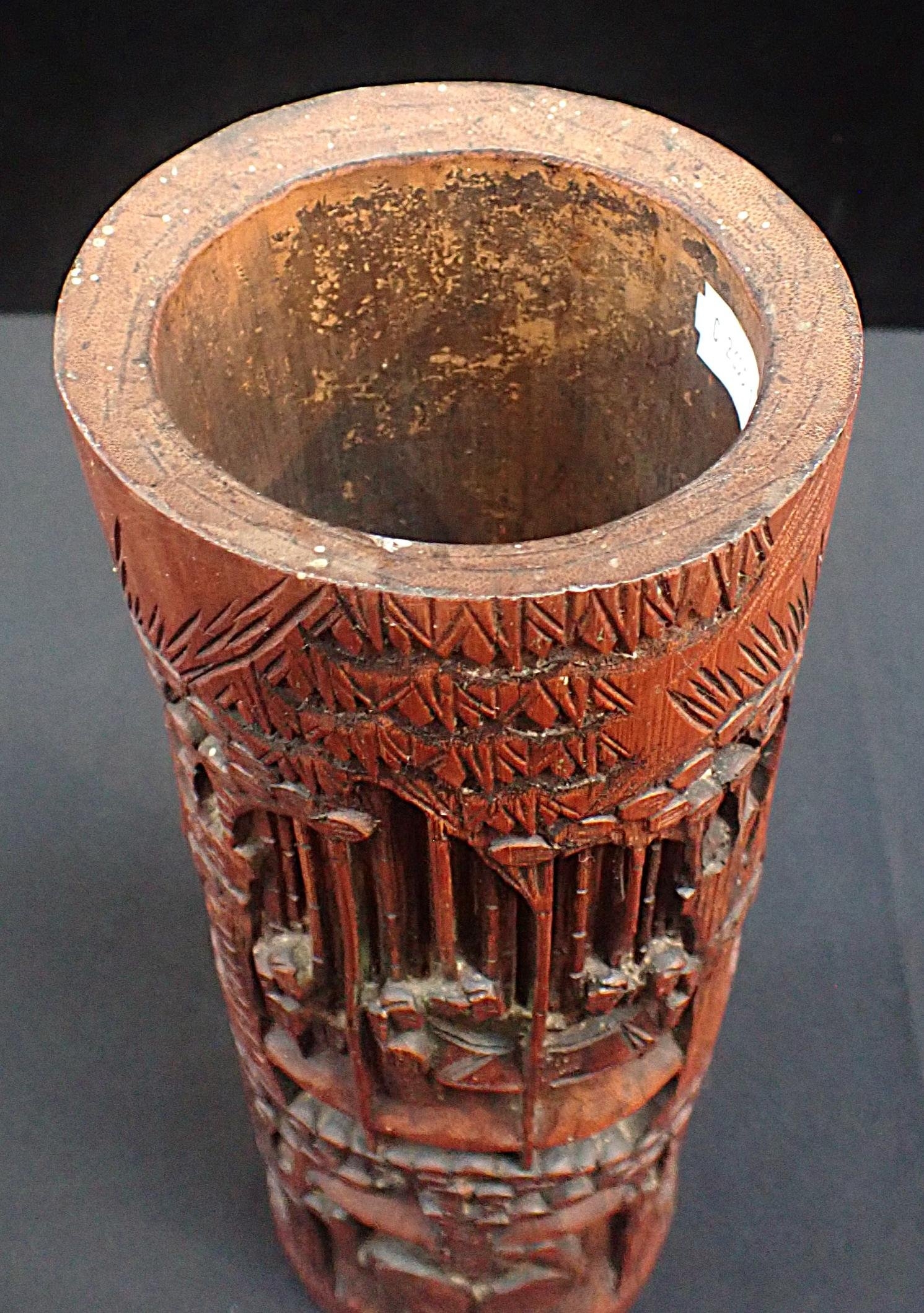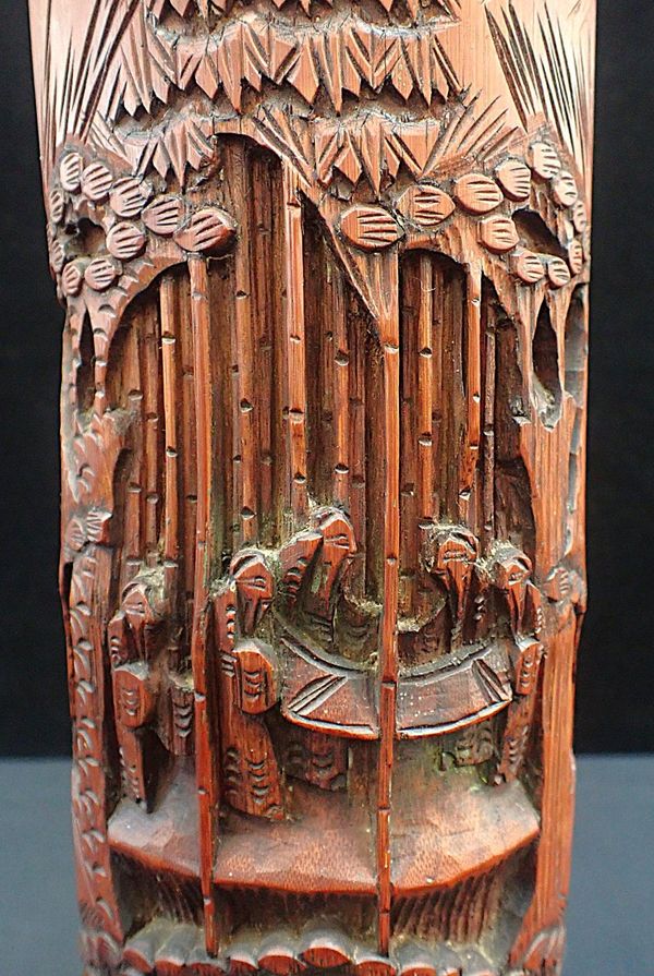 A CHINESE CARVED BAMBOO BRUSHPOT