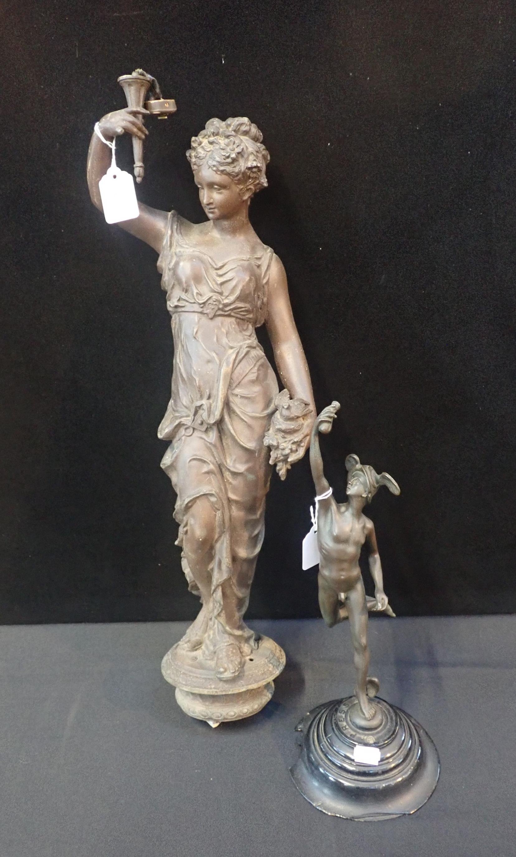 39cm high (on later improvised base), with a cast spelter classical figure, formerly a lamp (2)