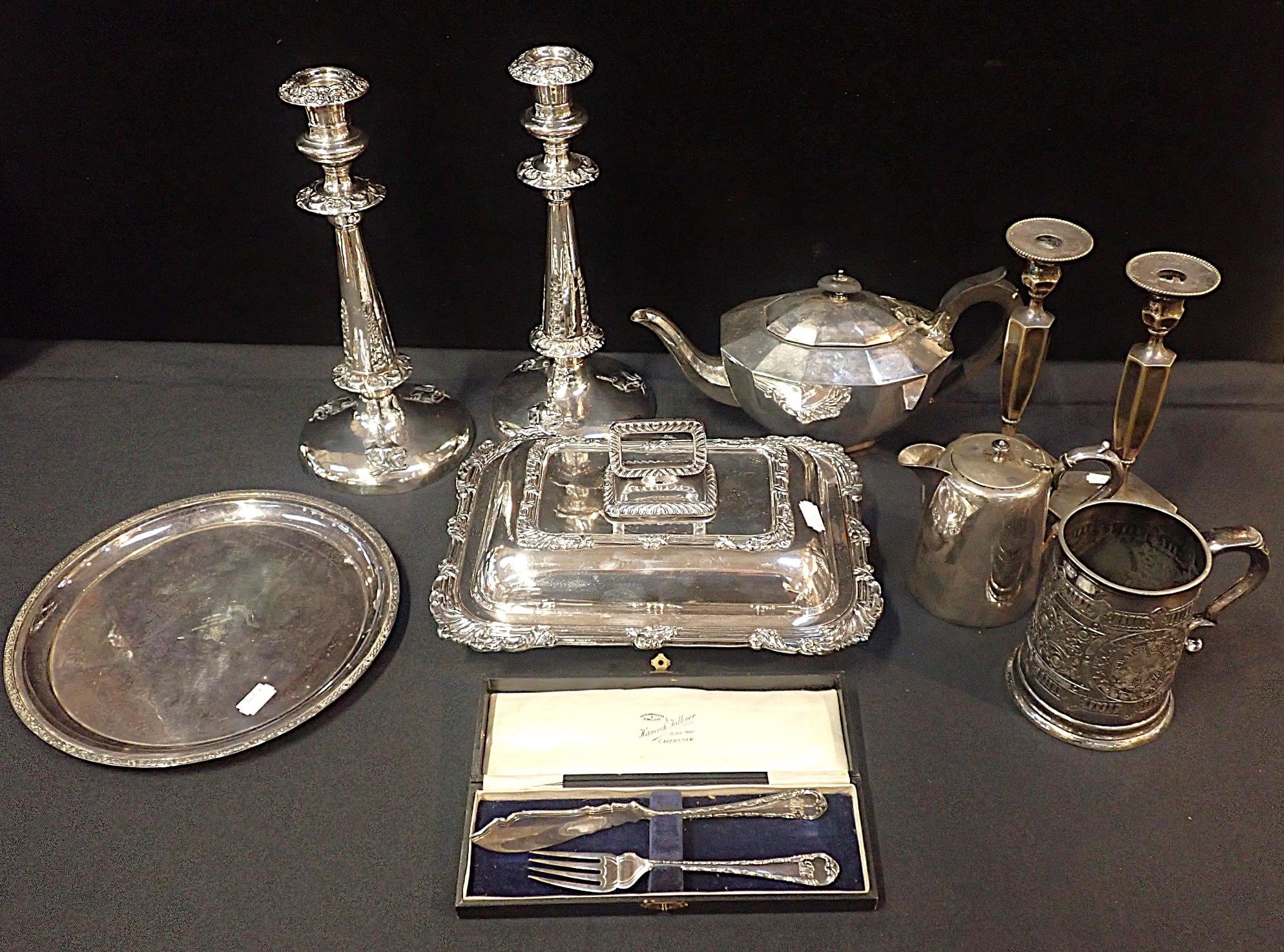 including a 'Reading and Caversham Royal Regatta Scratch Eights' mug, pairs of candlesticks, a serving dish, etc