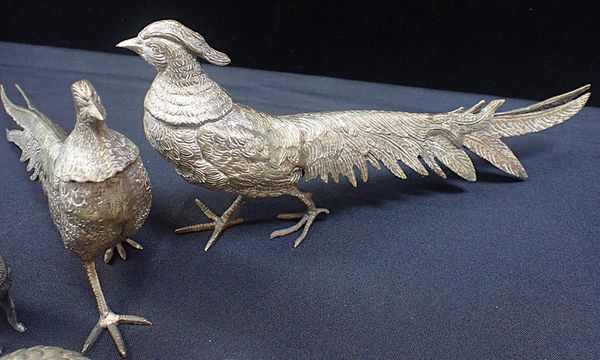A PAIR OF SILVER PLATED PHEASANTS