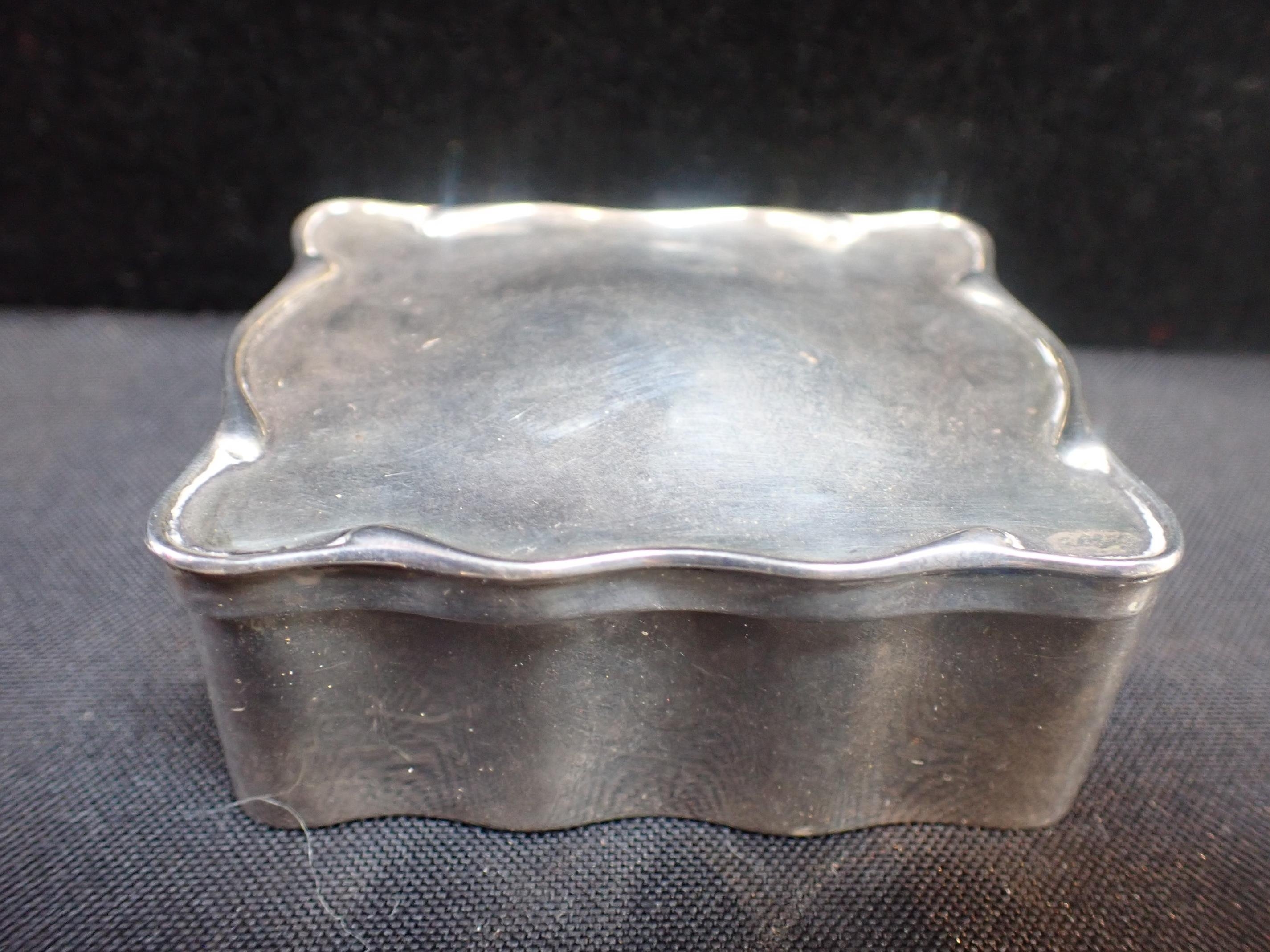 Birmingham 1910 by Walker and Hall, with Art Nouveau decoration to lid and a lined velvet interior. 7 cm width total gross weight 98.7 grams (hinge a/f)