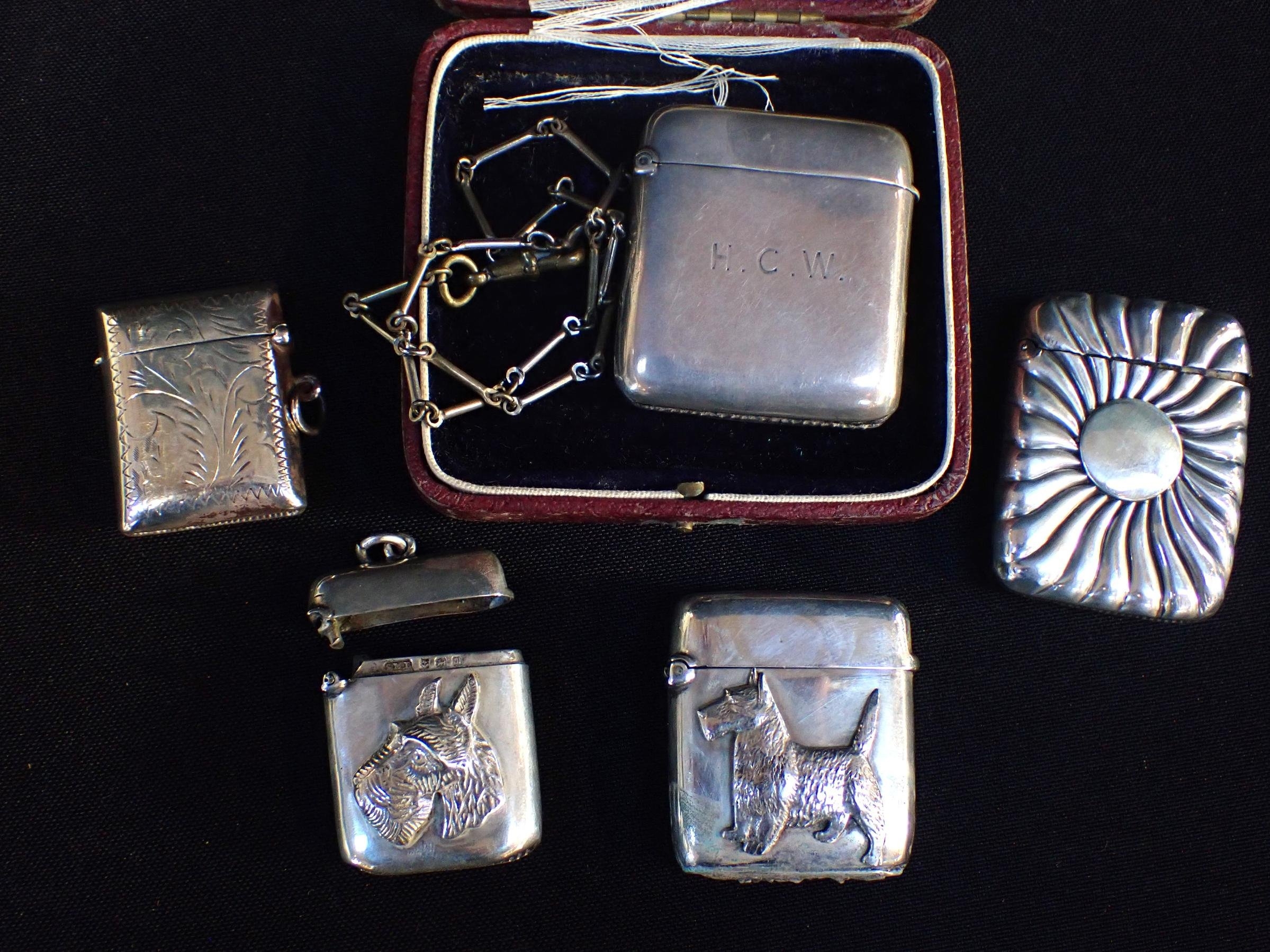 another similar (hinge a/f), and three other silver vestas (5)