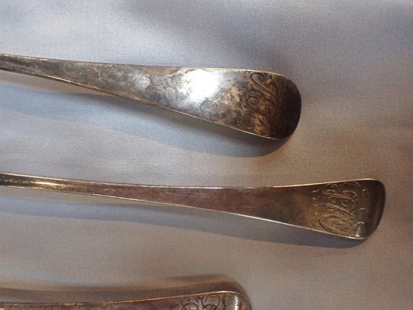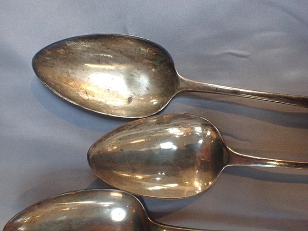TWO PAIRS OF GEORGE III SILVER TABLESPOONS