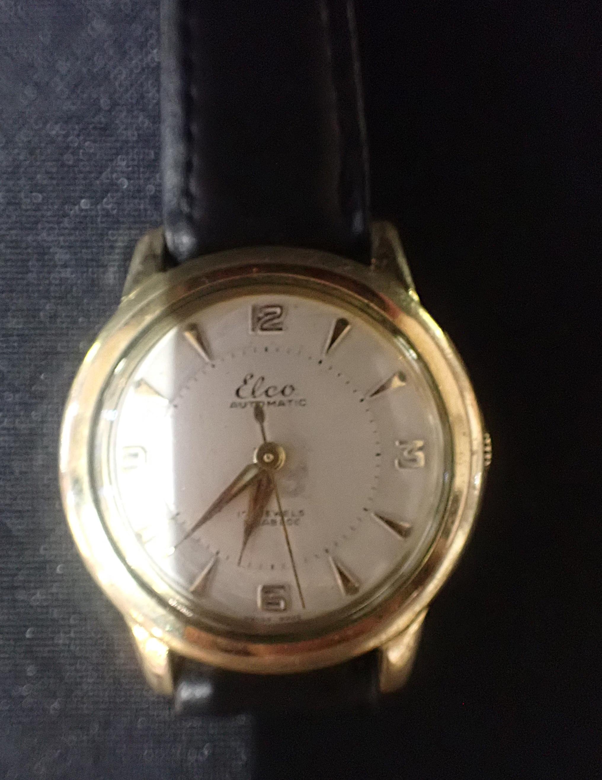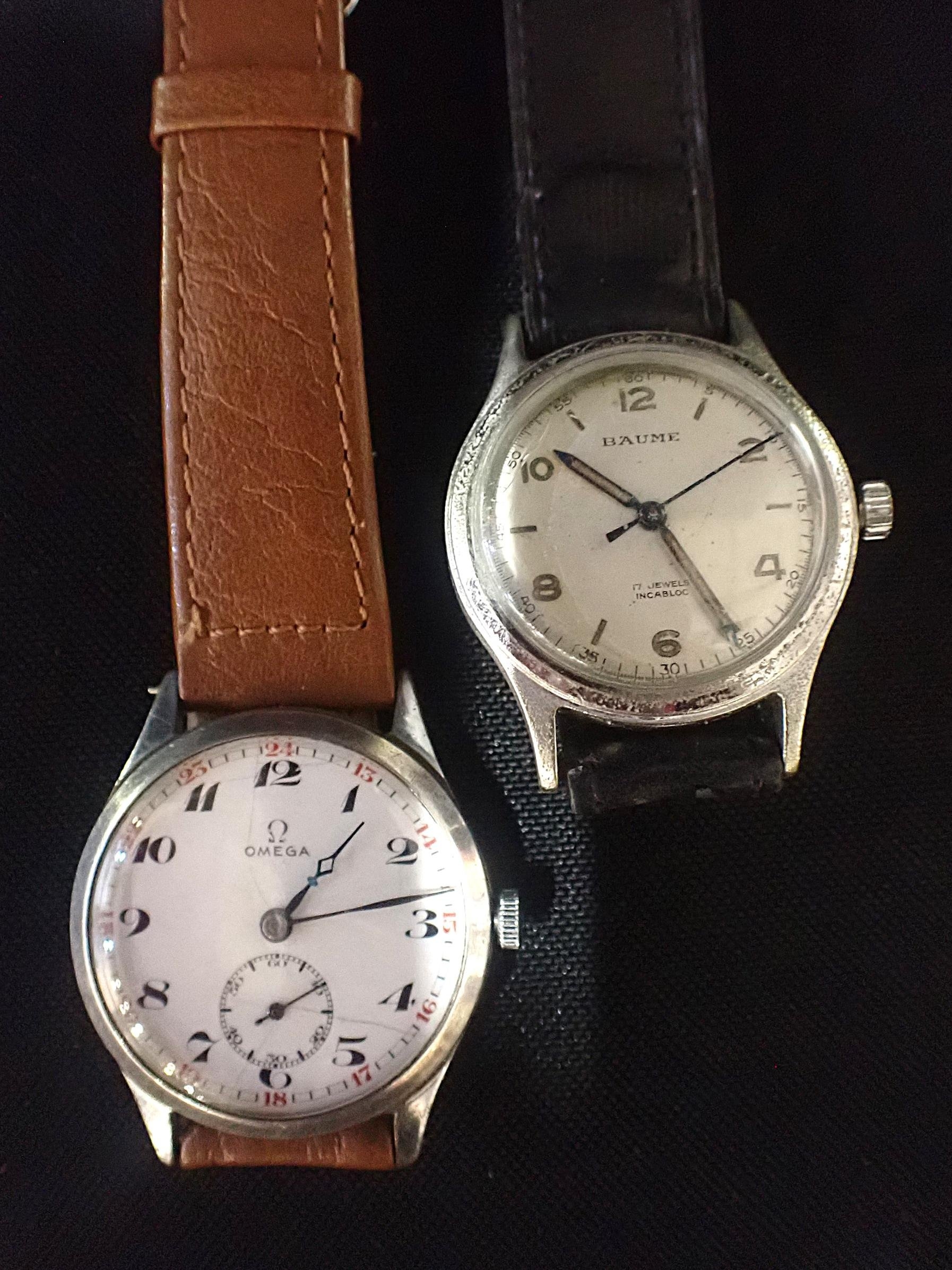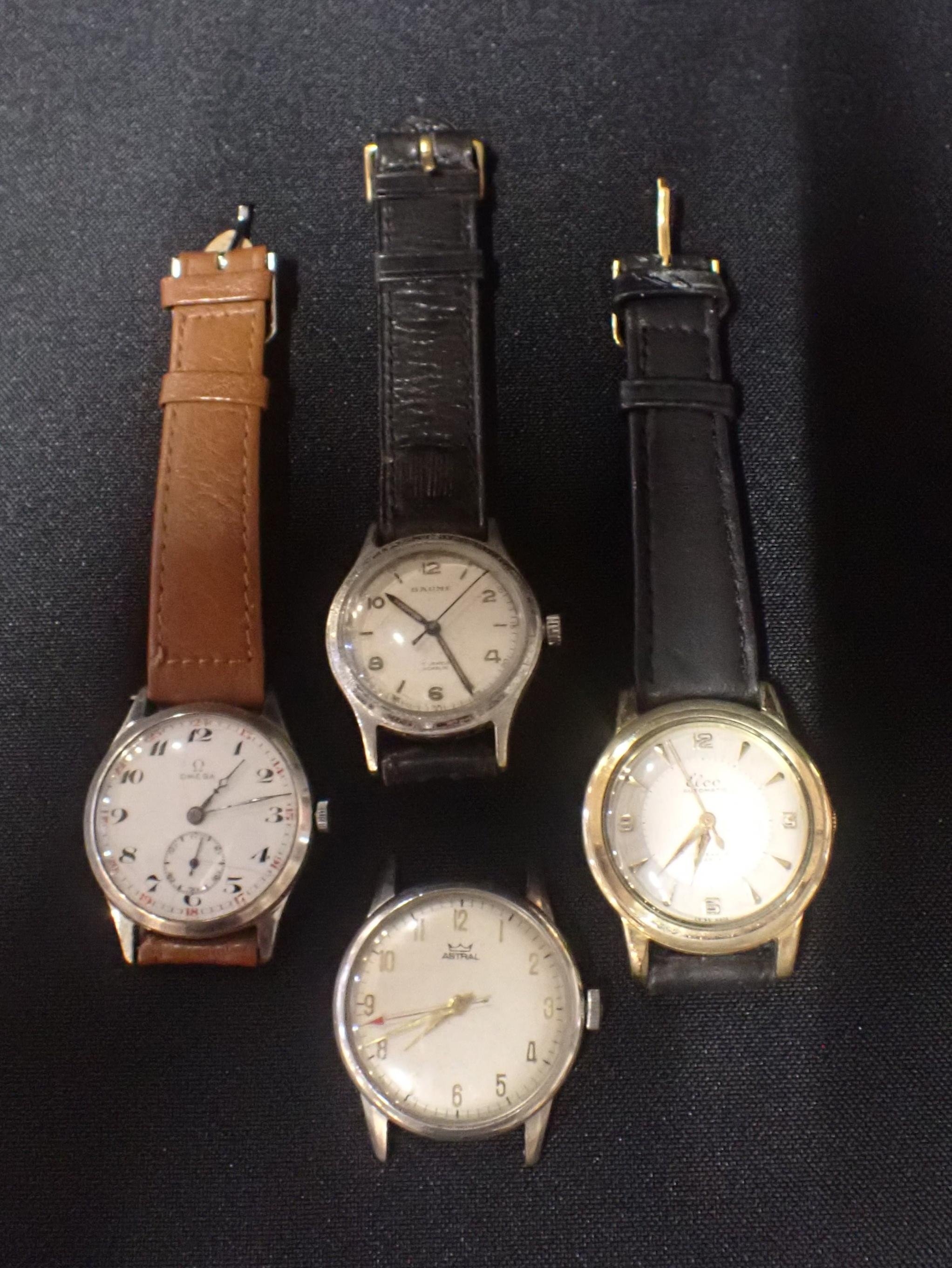 with manual wind movement, white dial, subsidiary seconds dial, black arabic numerals, dark blue steel hands, on a brown leather strap, circa 1960s, case diameter approx. 32mm; together with three other gentlemen's wrist watches (4)