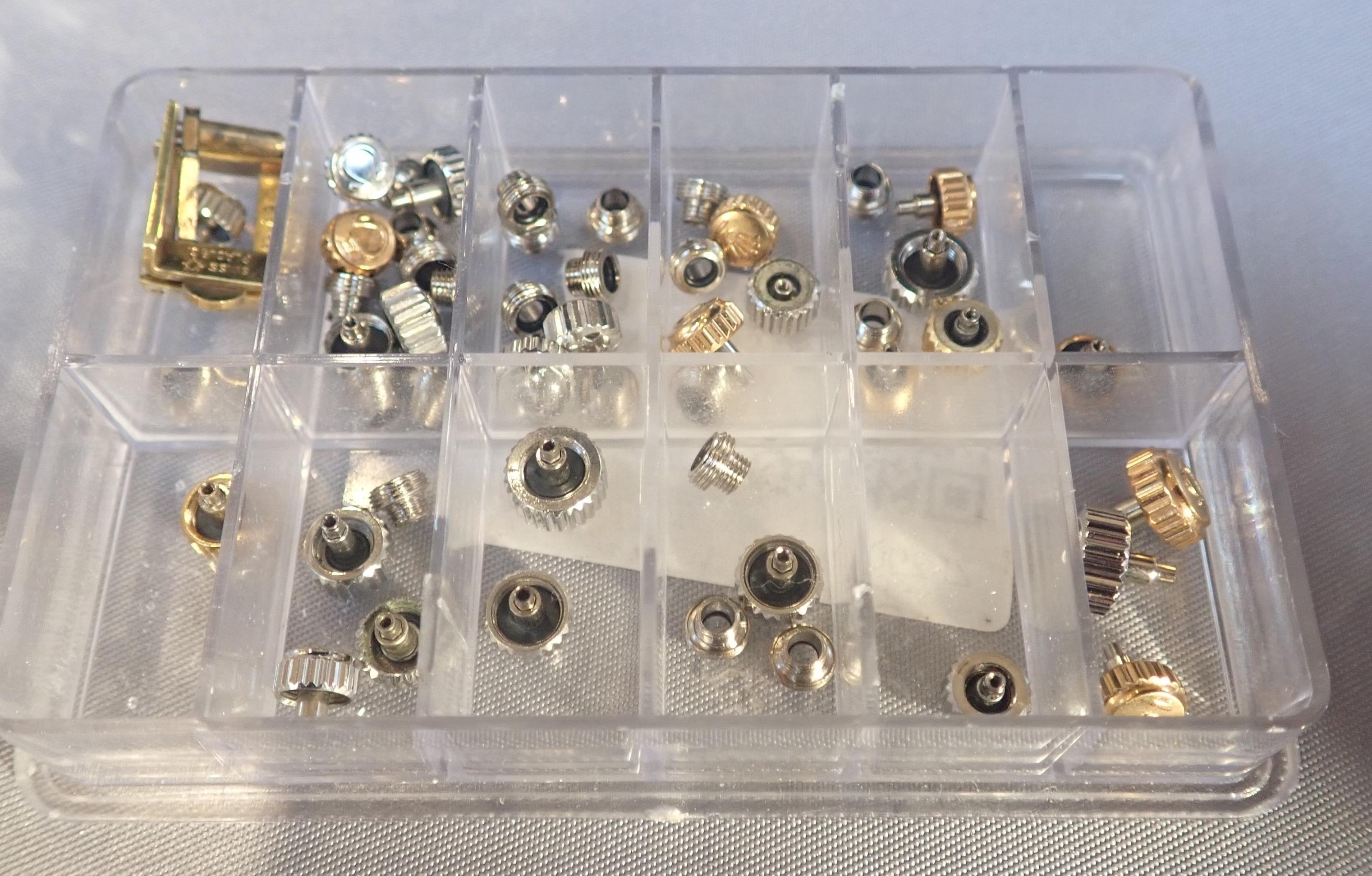 together with a quantity of various Omega and Rolex watch crowns