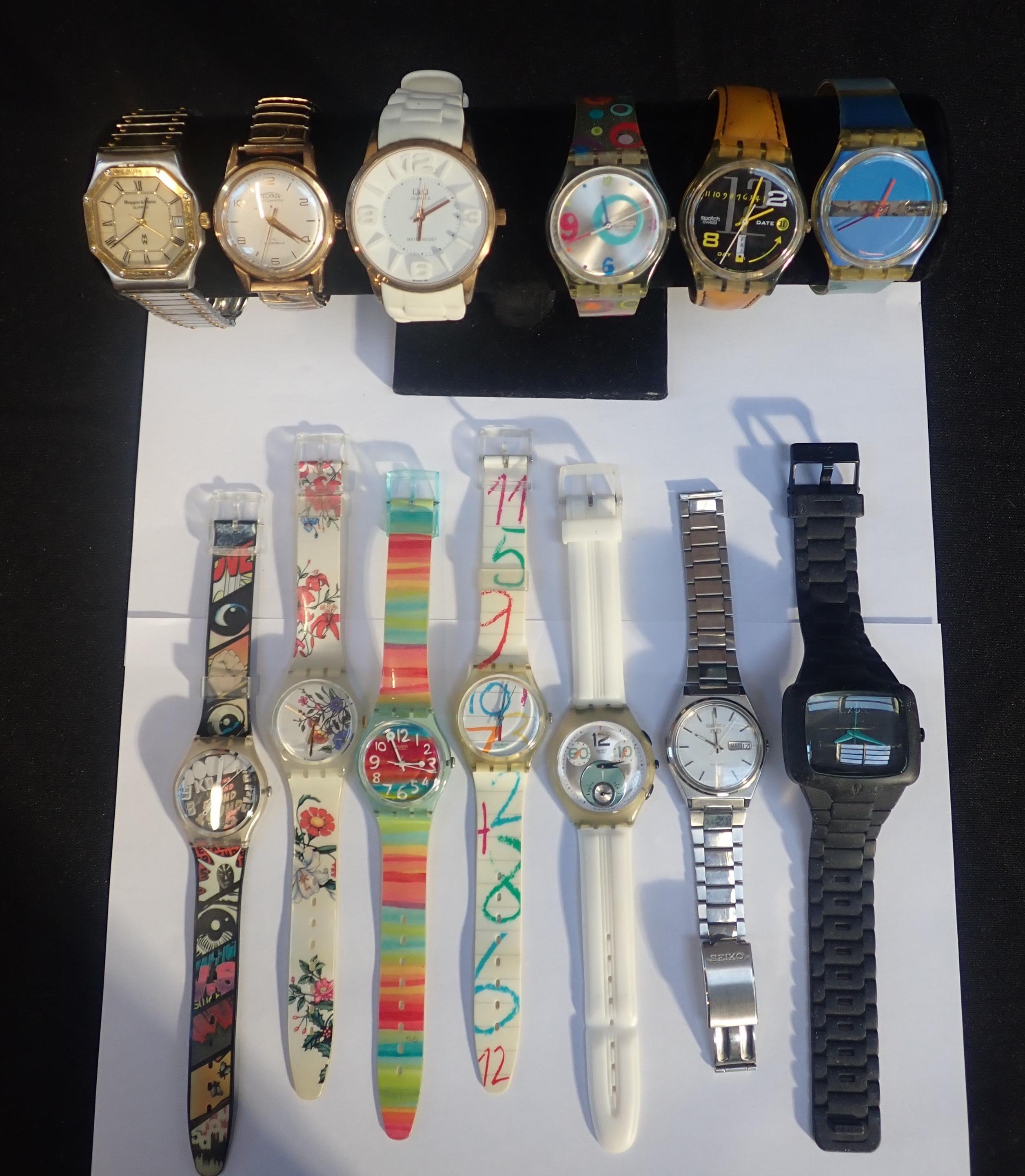 with automatic movement, silver dial, silver batten numerals, date aperture, silver luminous hands; together with a Mappin & Webb stainless steel gold plated bracelet watch; and a quantity of various other watches by SWATCH, etc
