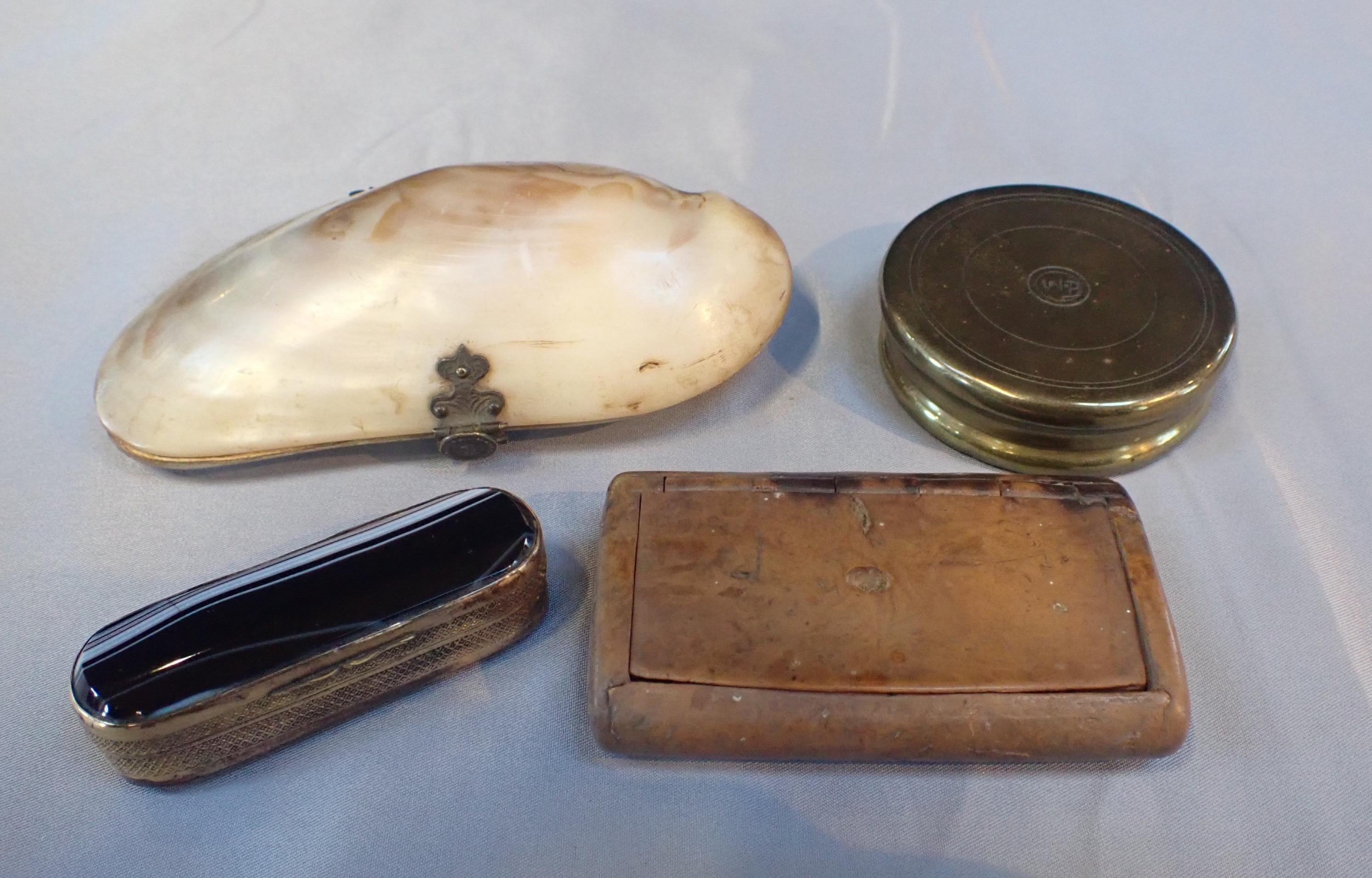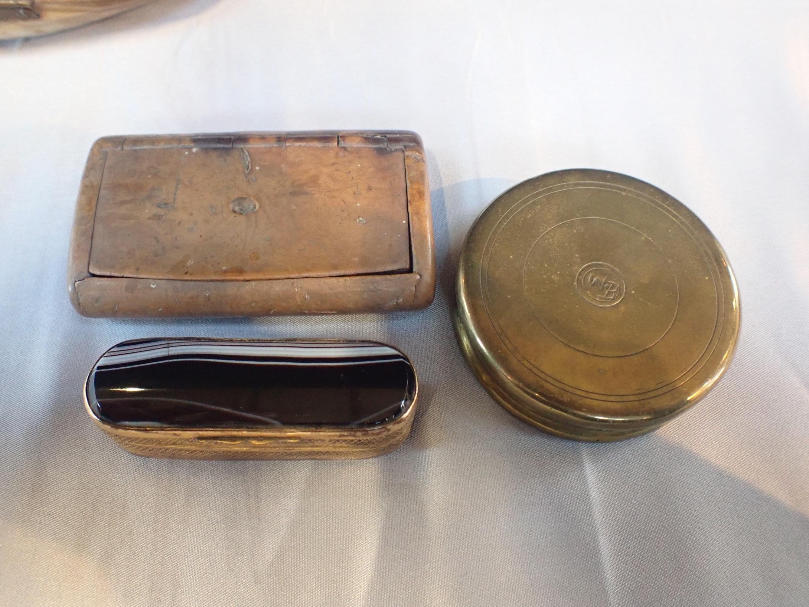with a Victorian gilt metal mounted agate vesta case and two 19th century snuff boxes (4)