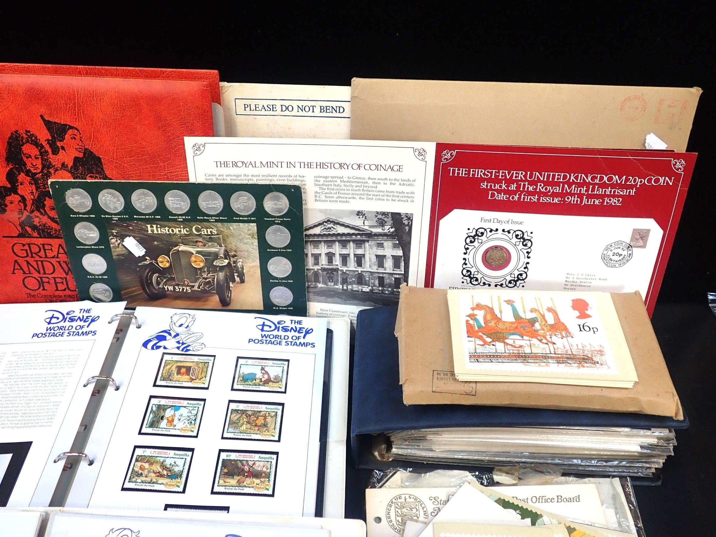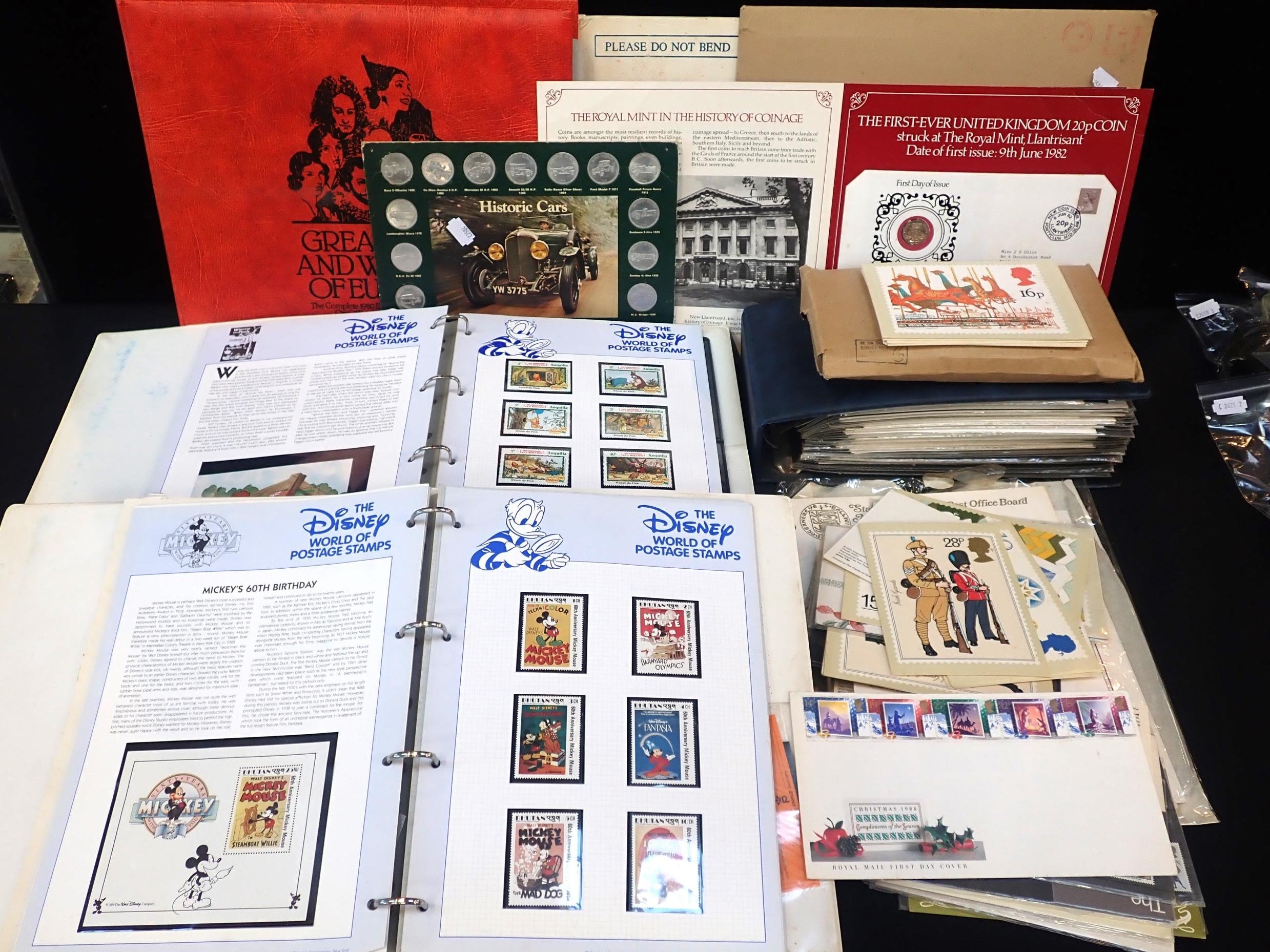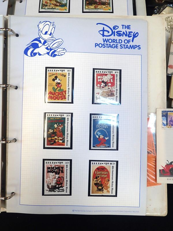 with Disney thematics mint in two albums, GB including FDCs, some better cancels noted, PHQ cards, Europa Album, also Shell ‘Historic Cars’ token set (5)