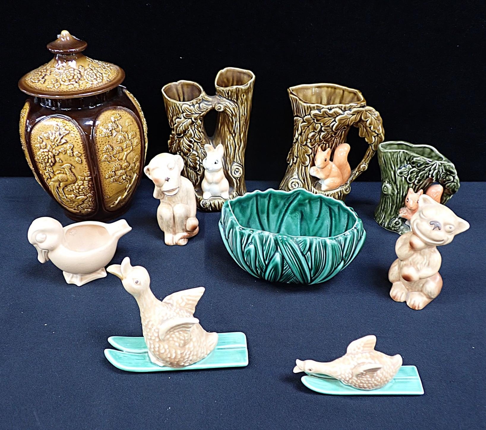 including two ski-ing ducks, a 'Chinese' jar, monkeys, and other items (10)