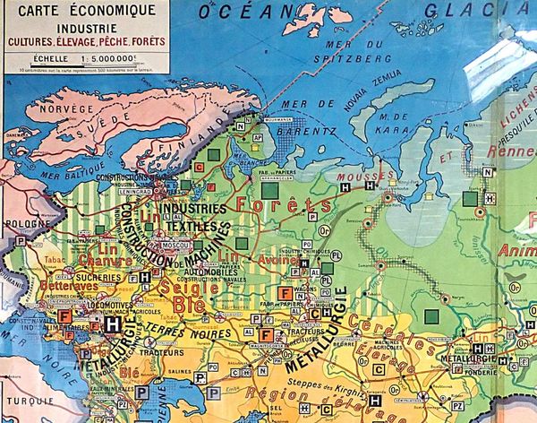 A LARGE VINTAGE FRENCH MAP OF THE SOVIET UNION
