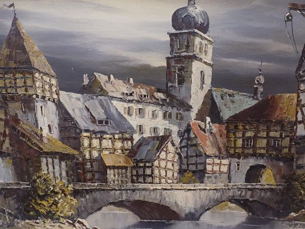 A 1960s OIL PAINTING, GERMAN TOWNSCAPE