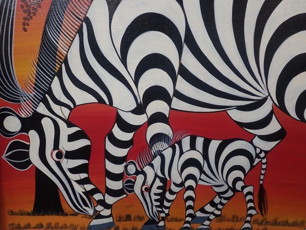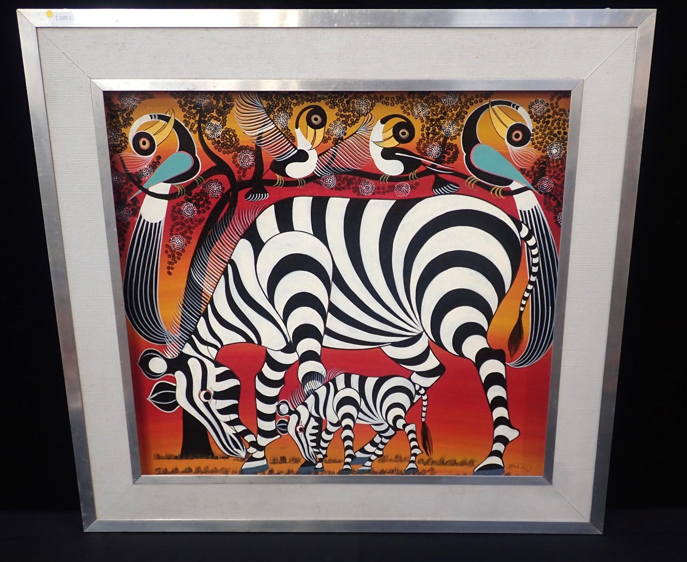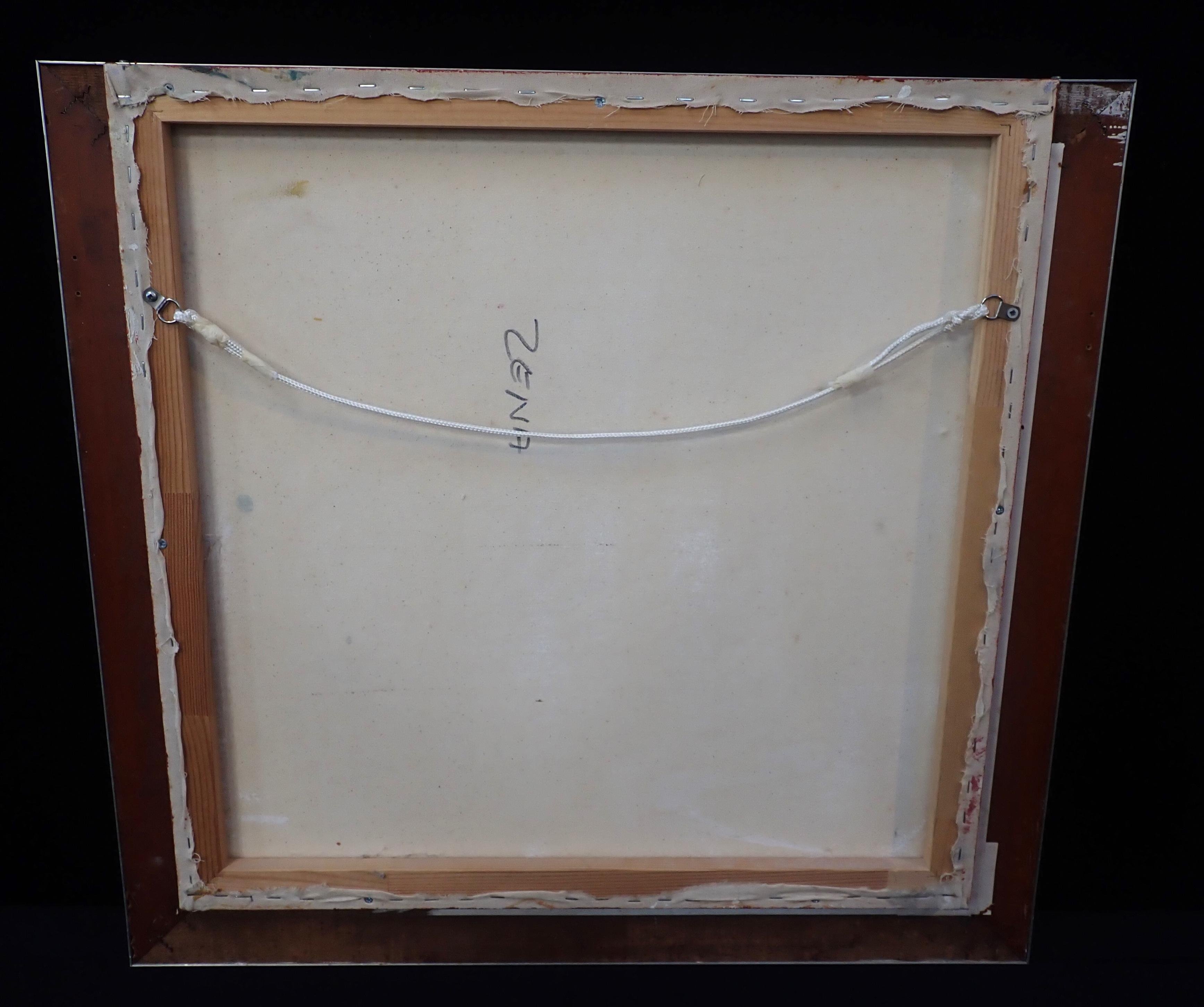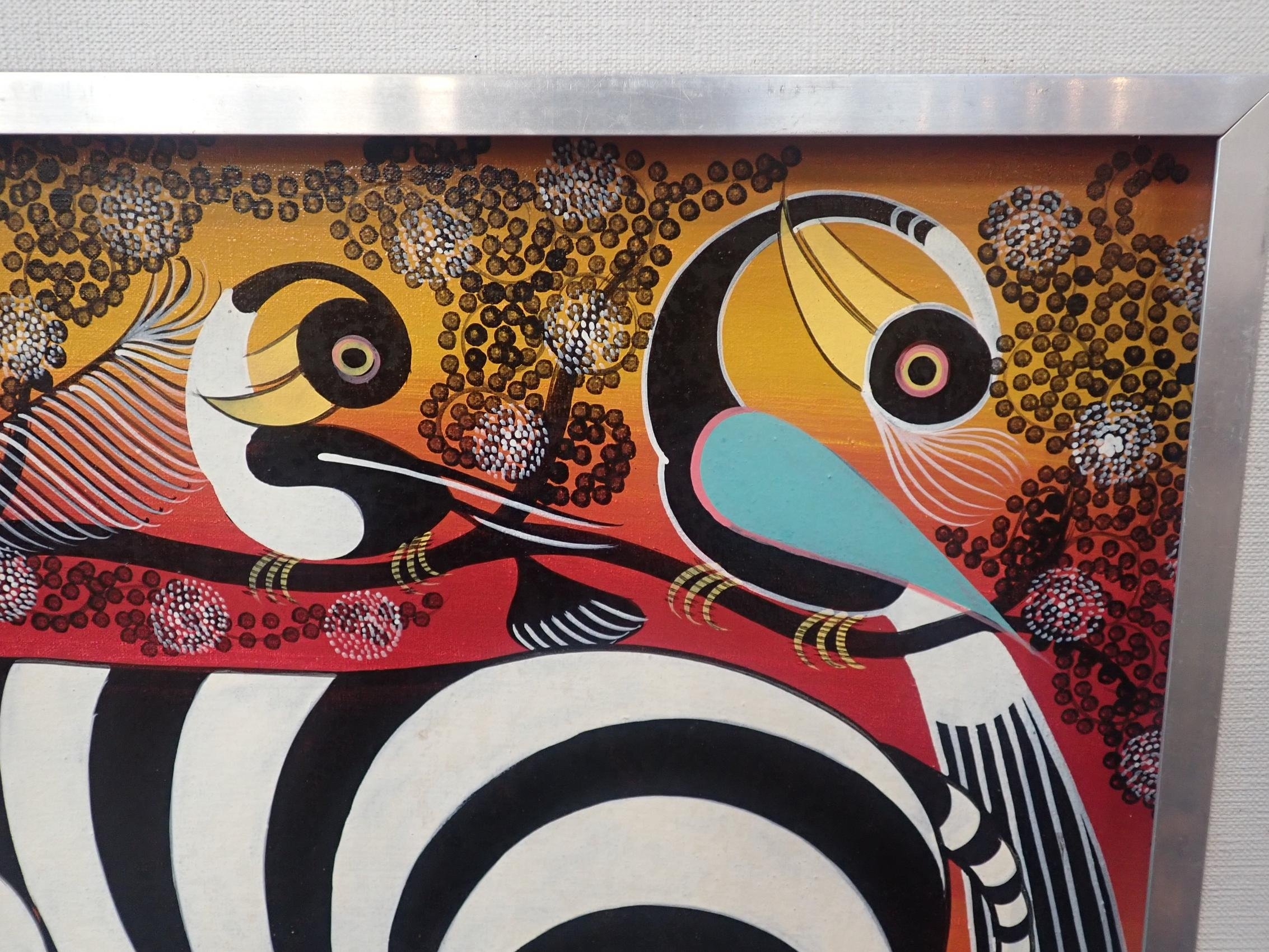with exotic birds above, oil on canvas, the stretcher 61 x 61cm (screwed to back of ill-fitting frame)