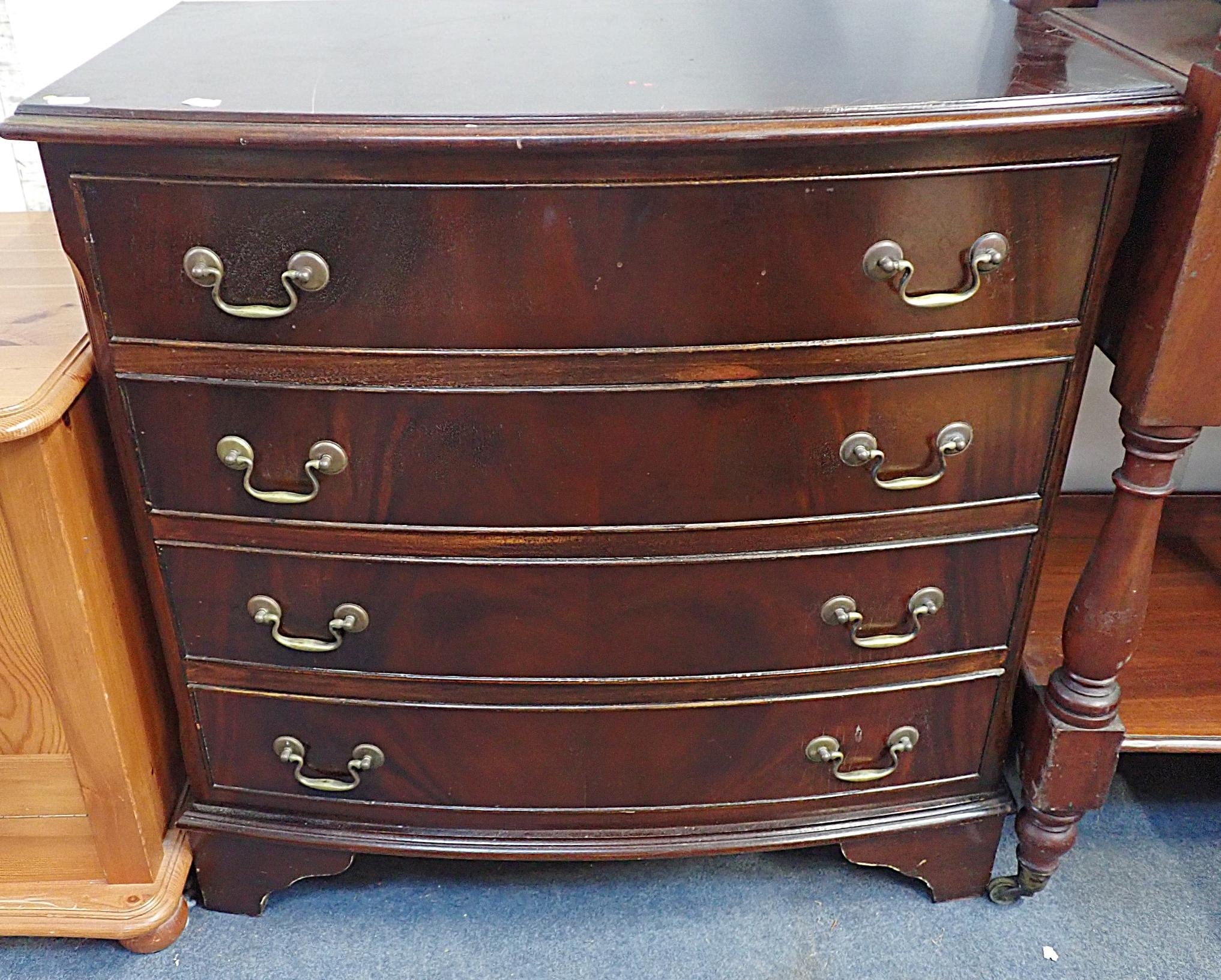 with canted and reeded front corners, fitted four long drawers, 75cm high x 76cm wide x 40cm deep (bracket foot detached)