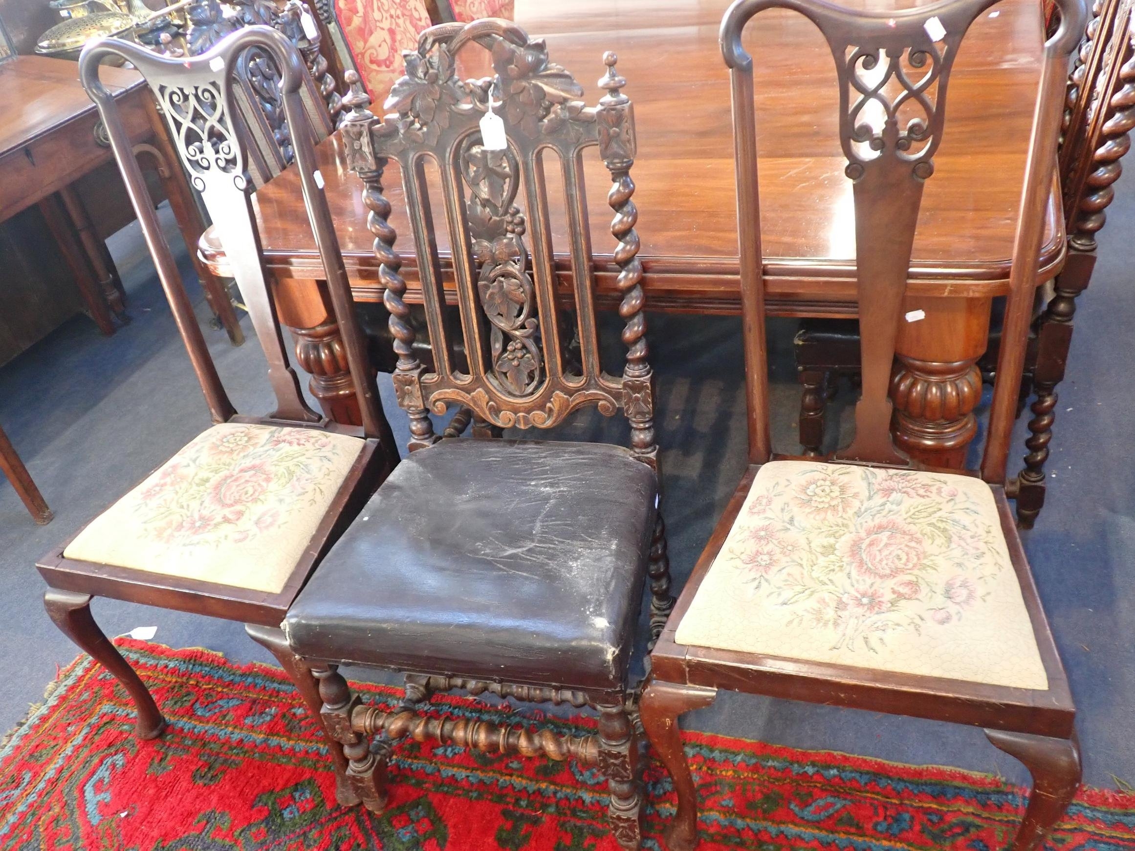 with pierced, carved and with spiral turnings, four with matching upholsterey, and two with American cloth (6)