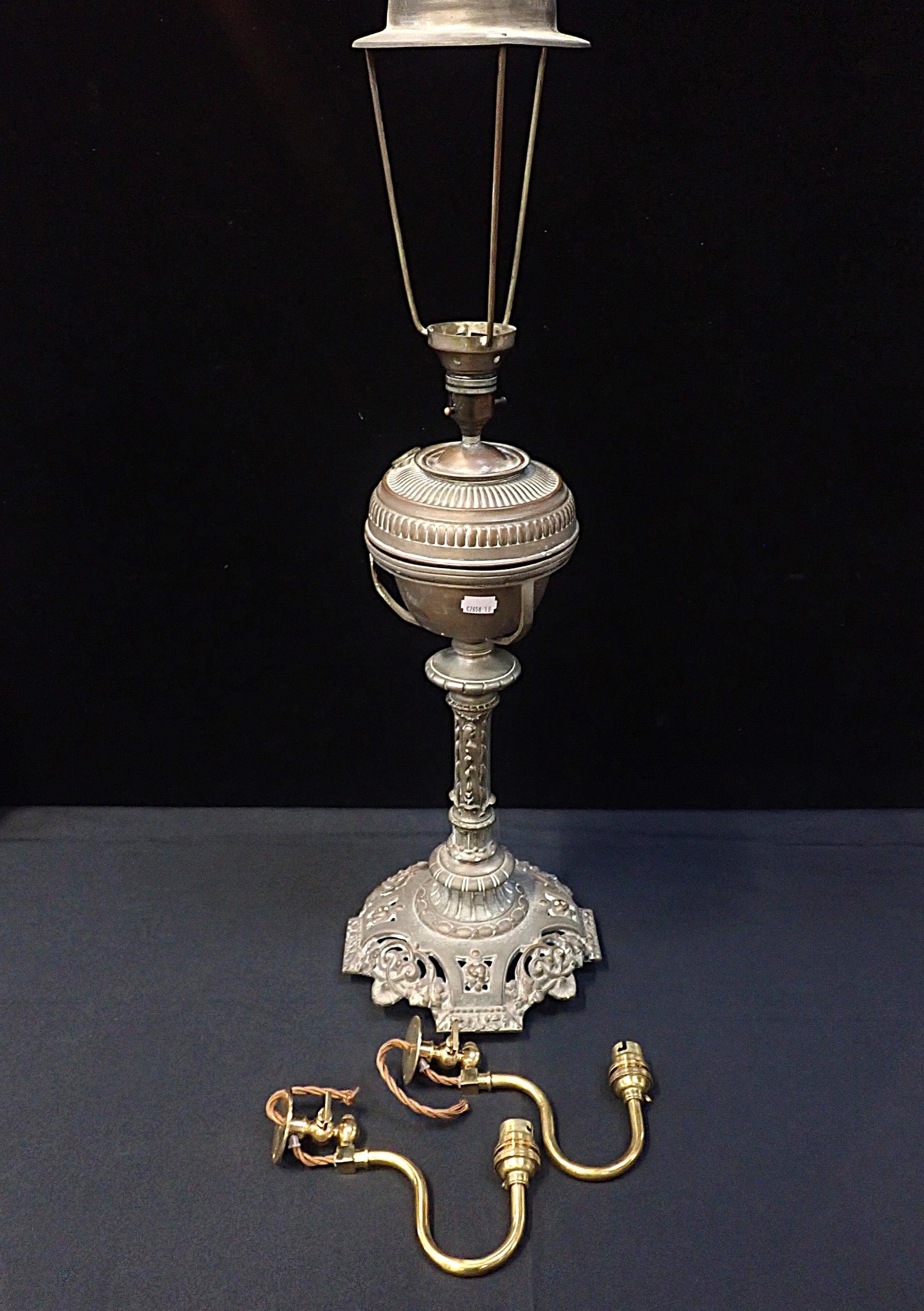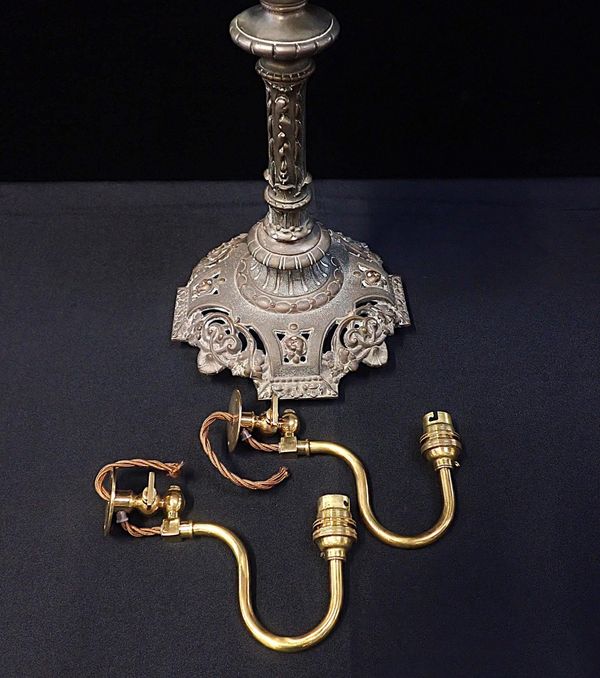 (no glass) with a pair of brass wall lights, in the style of gas lamps (3)
