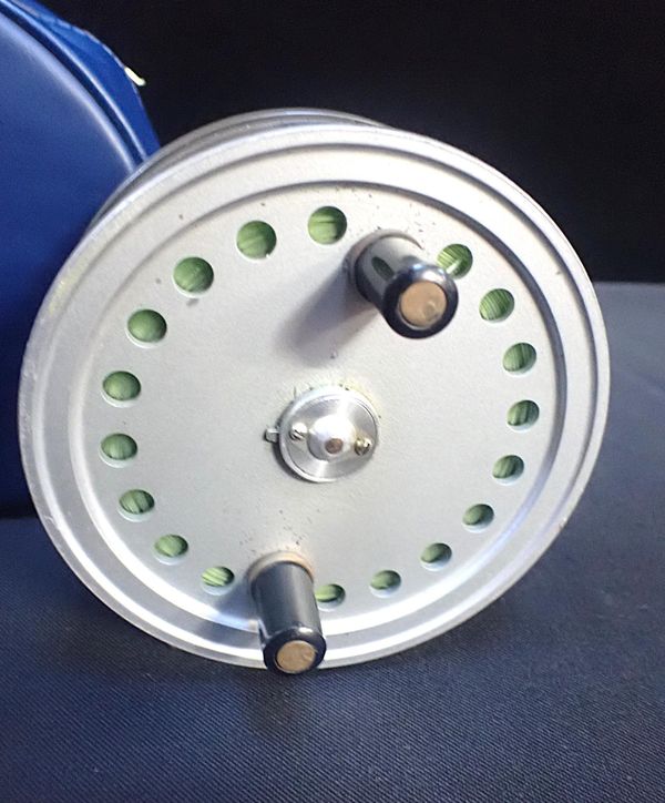 made by Hardy Bros Ltd, with twin ebonite handles, two-screw latch, smooth brass foot and ebonite brake handle, in House of Hardy case, size 4" (2)