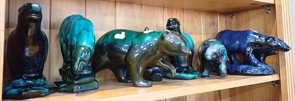 with turquoise glaze, the tallest 17cm high; together with a similar example by blue mountain pottery (some nicotine deposit) (7)