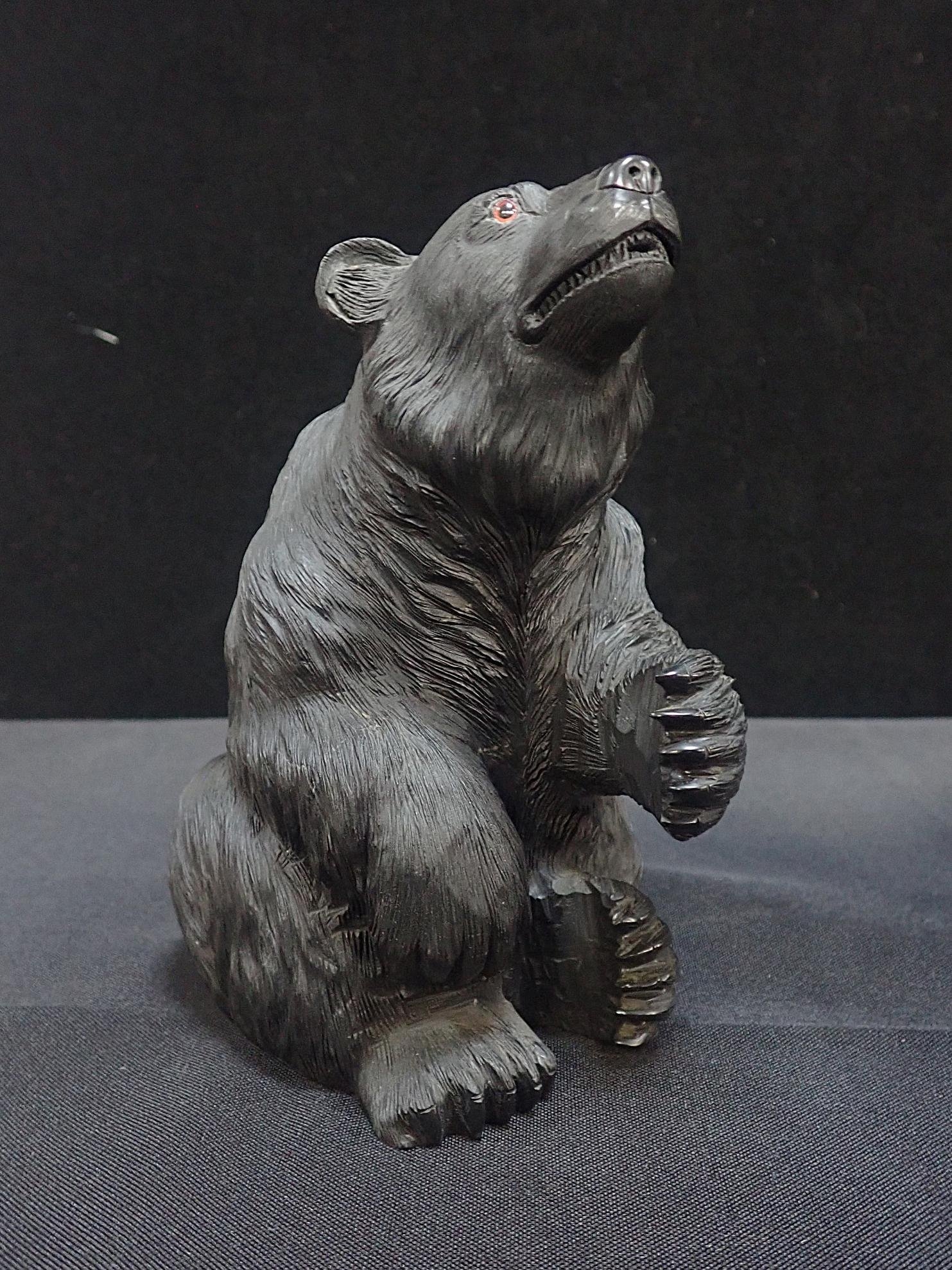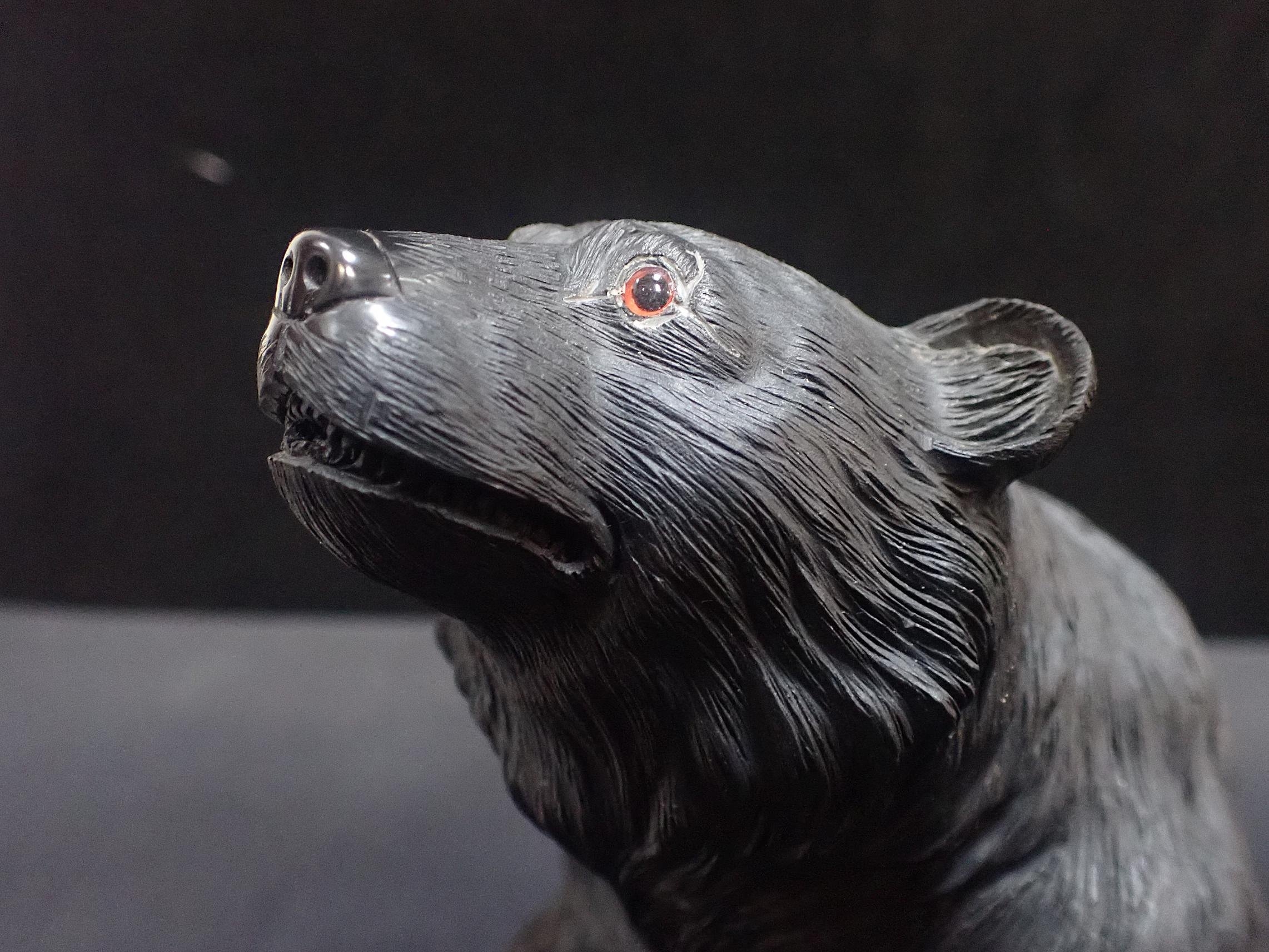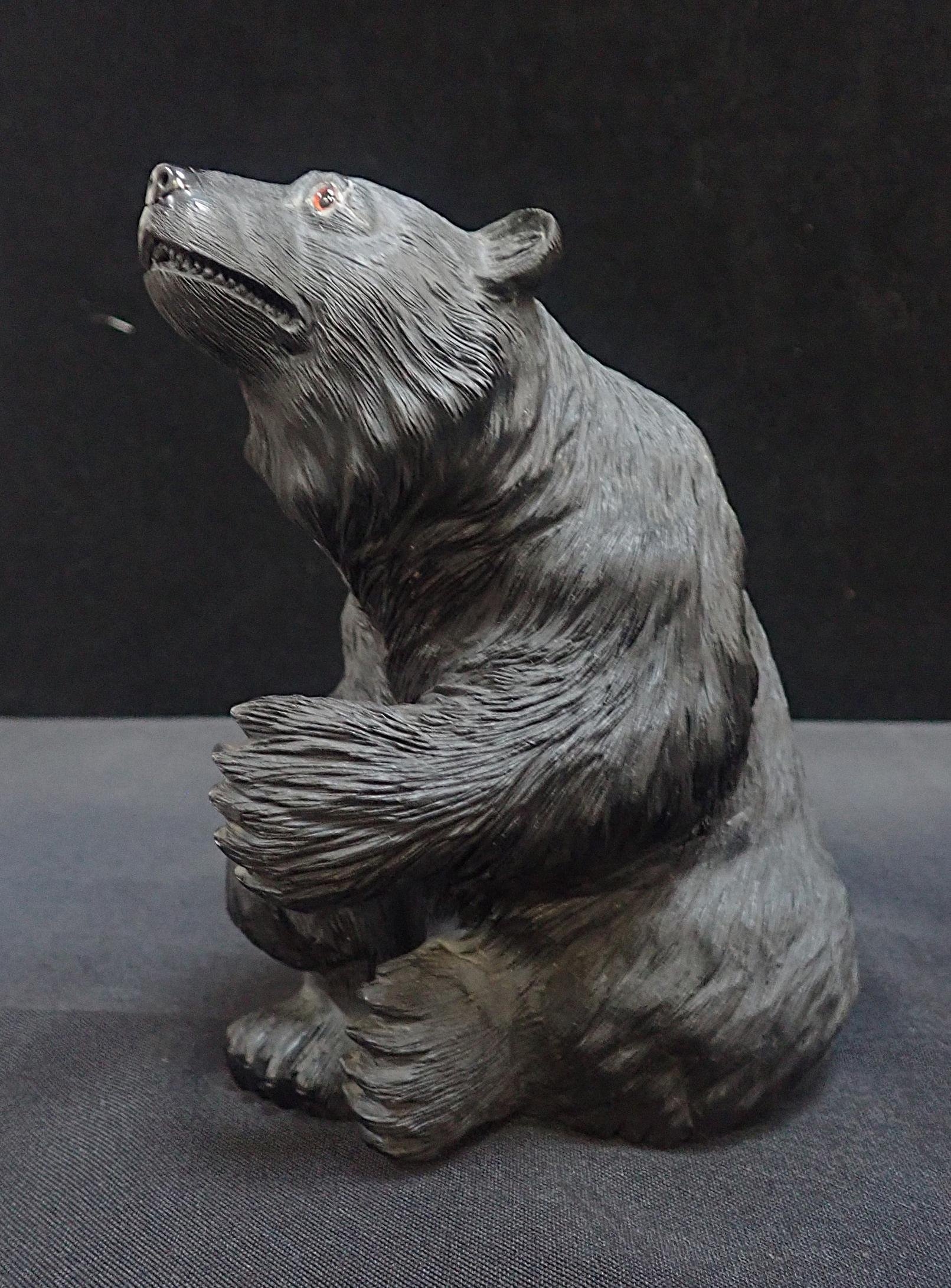 A CARVED FIGURE OF A SEATED BEAR