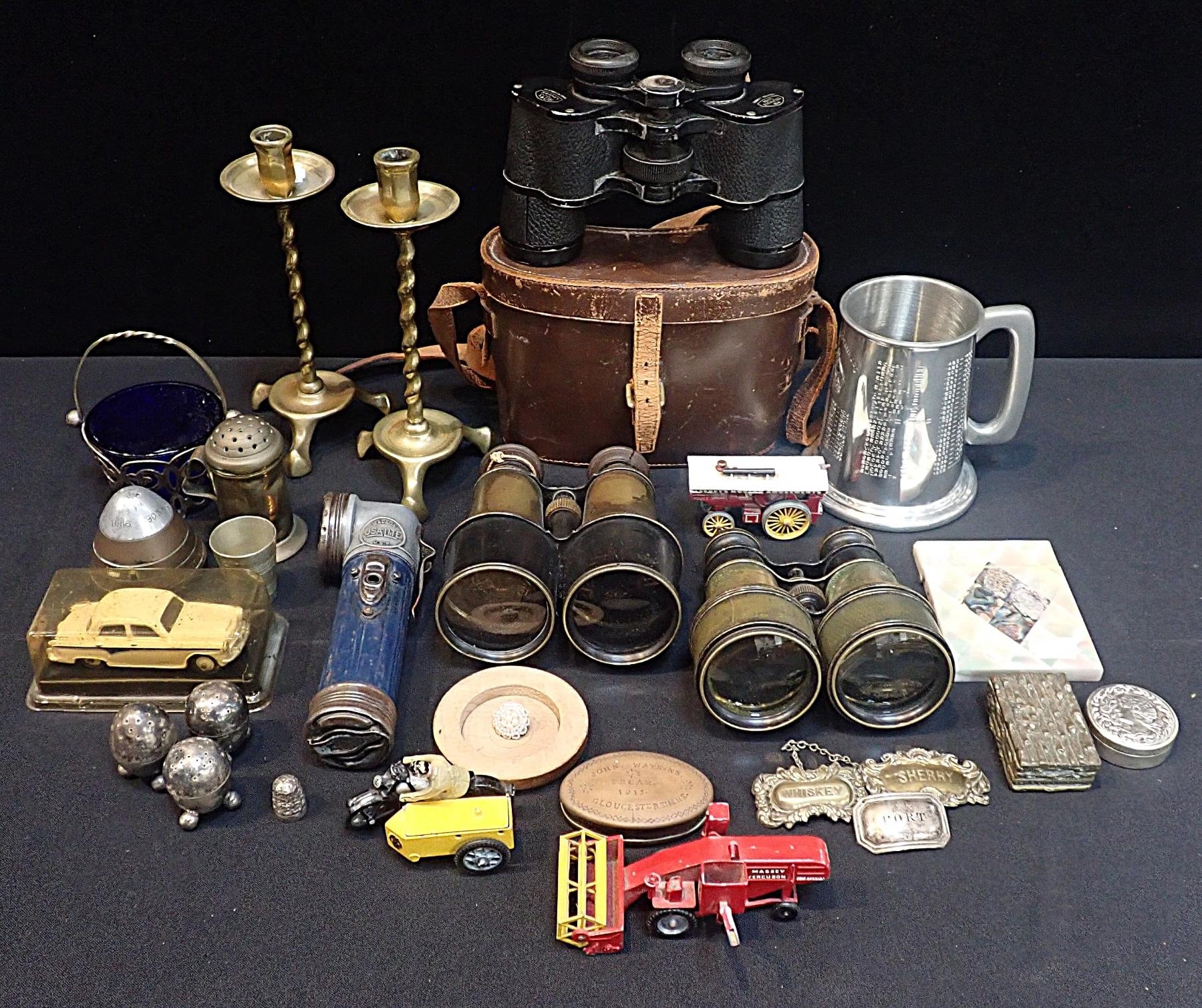 a pair of Ross binoculars, others, a mother of pearl card case (a/f), and other items