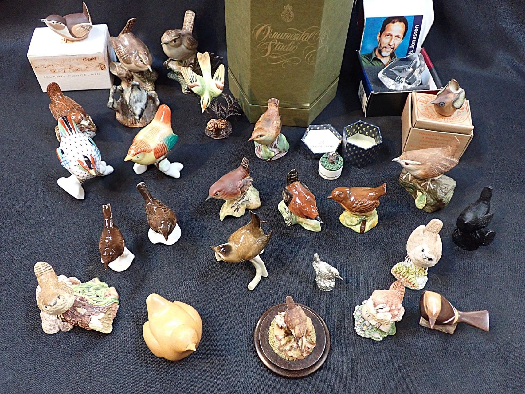 and a collection of ceramic and other birds by Beswick, Hollohaza, Goebel, Mats Jonasson, etc