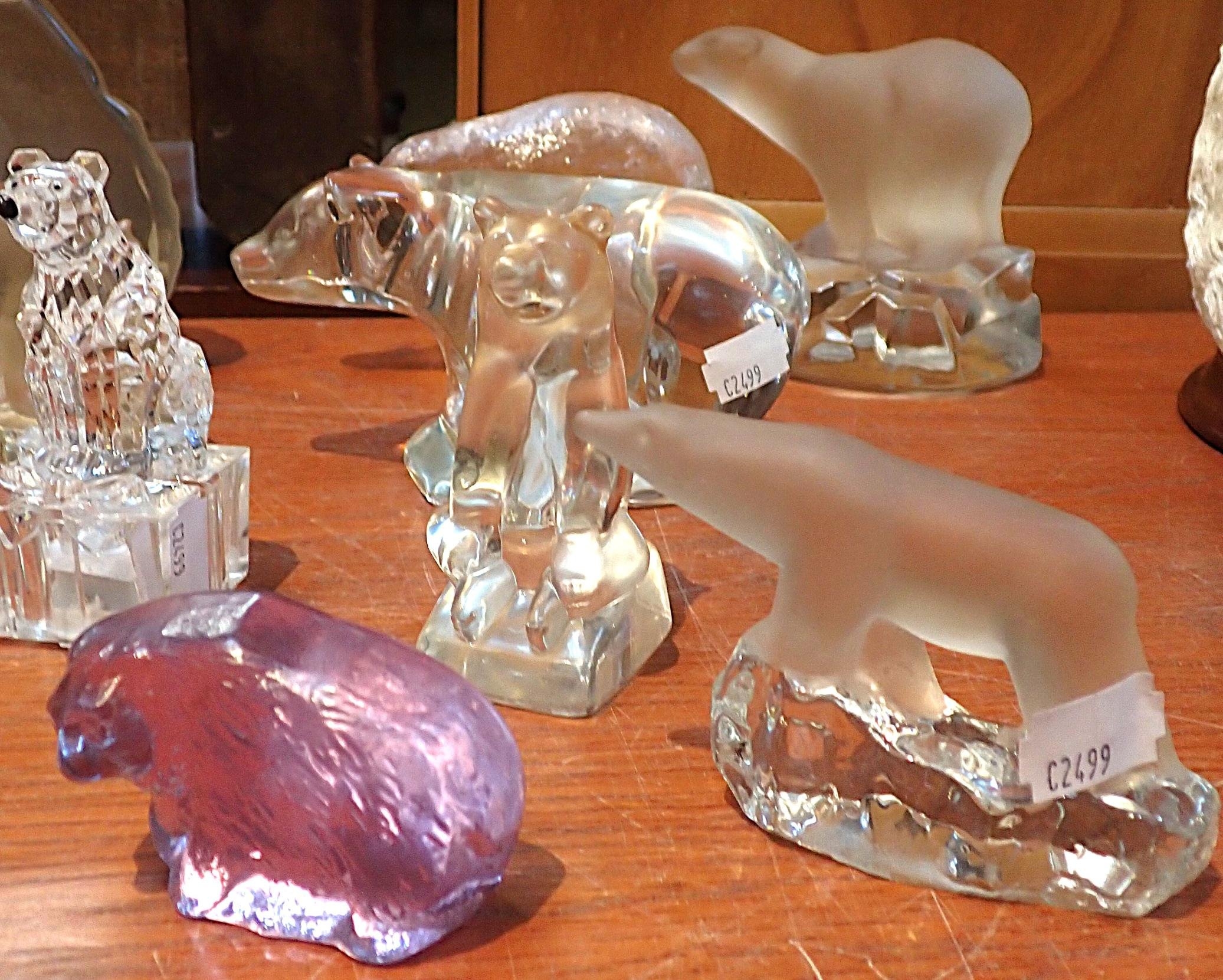 A GROUP OF GLASS PAPERWEIGHTS AND ORNAMENTS FIGURED AS BEARS