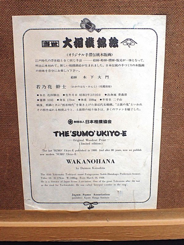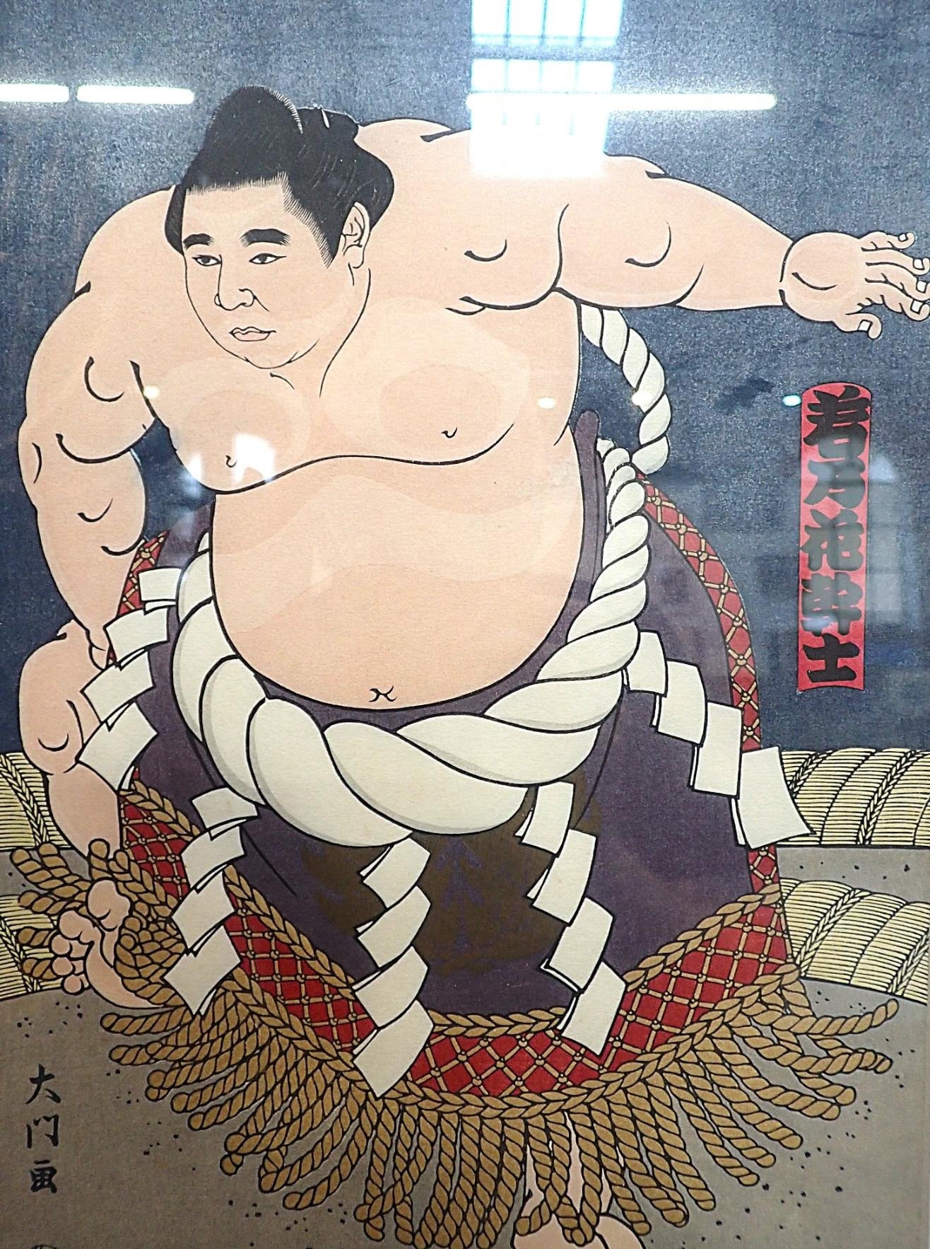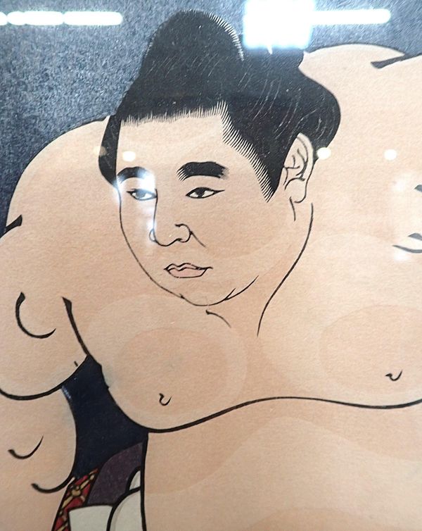 after the earlier 'Sumo' Ukiyo-e, woodcut print, published by the Kyoto Hanga Institute, framed 54.5 x 52.5cm