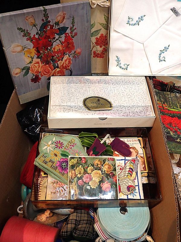 needle cases, packs of bias bindings, handkerchiefs etc, and a quantity of lace trimmings