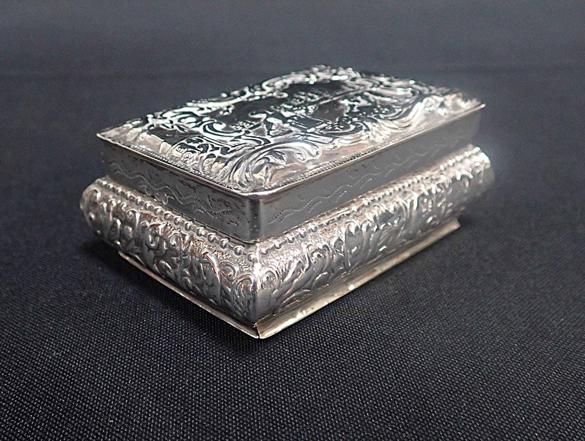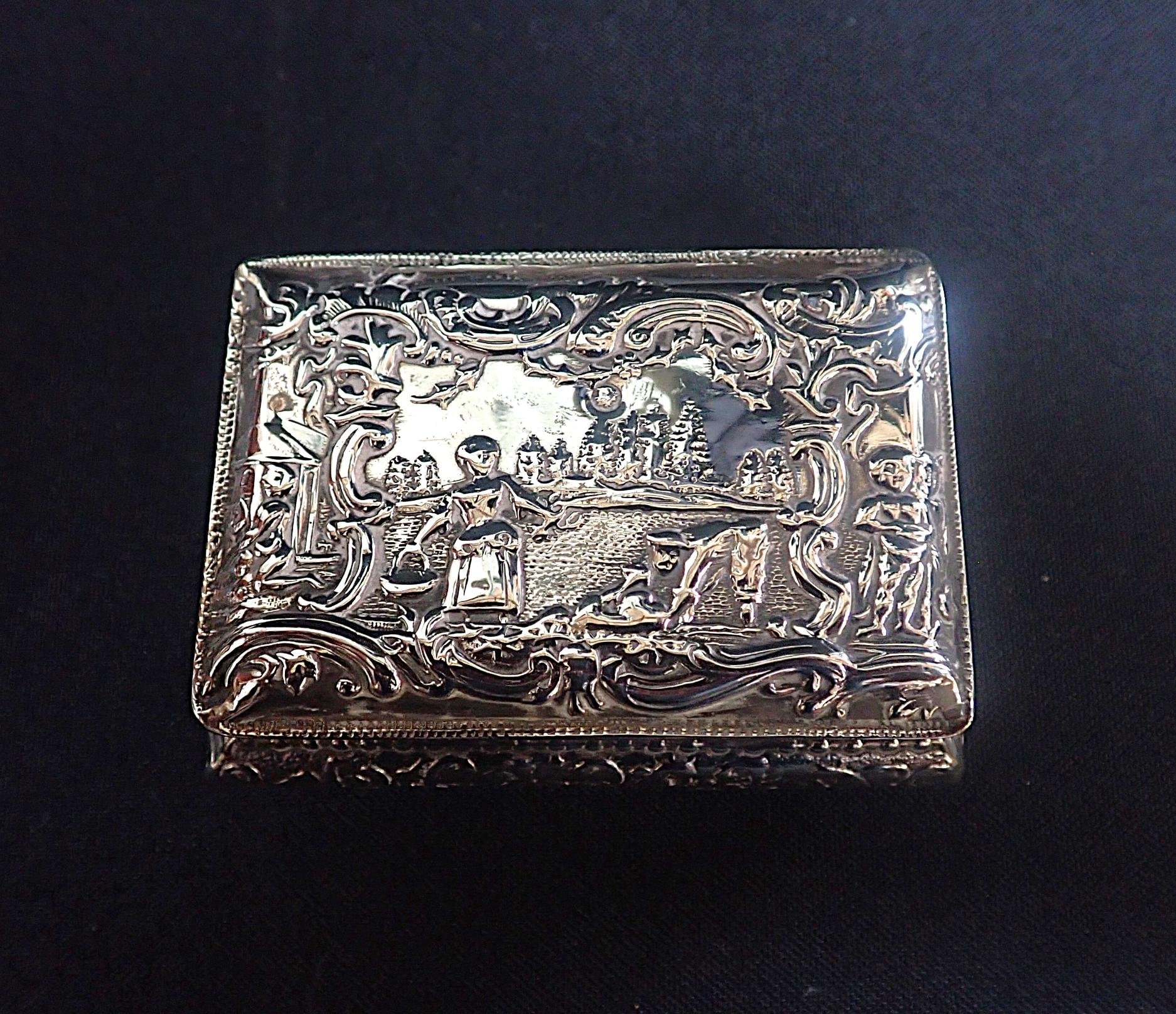 decorated with scenes in the Dutch style, with interior striker and import marks for London 1891, 8cm wide