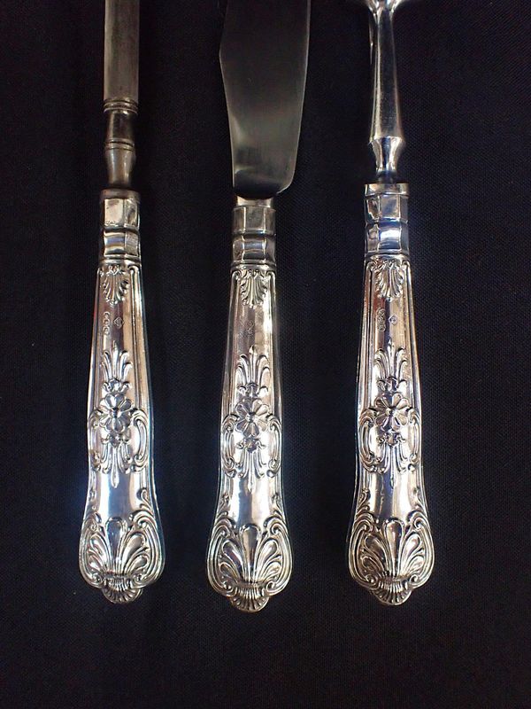 AN ELIZABETH II SILVER HANDLED 3 PIECE CARVING SET