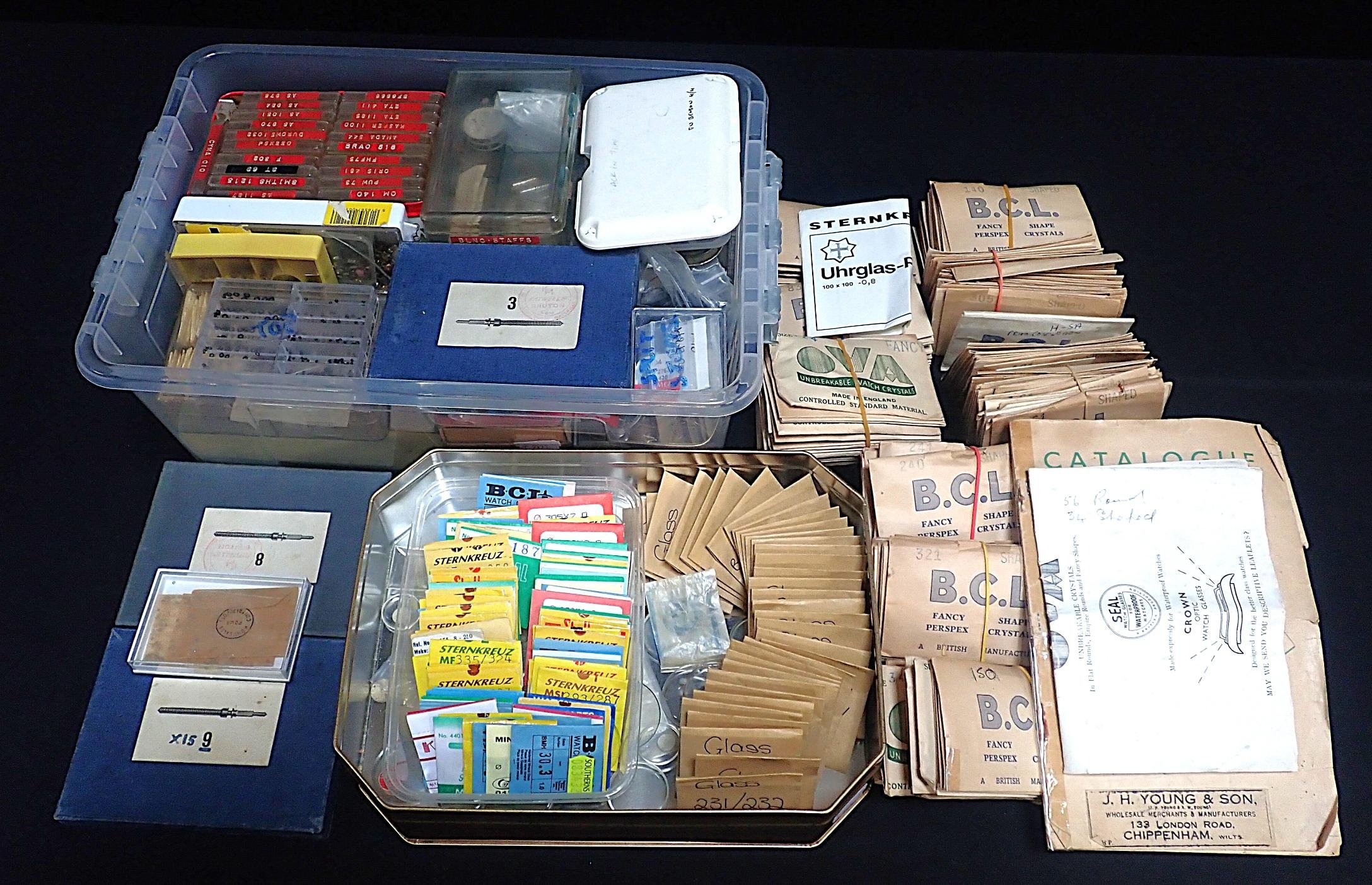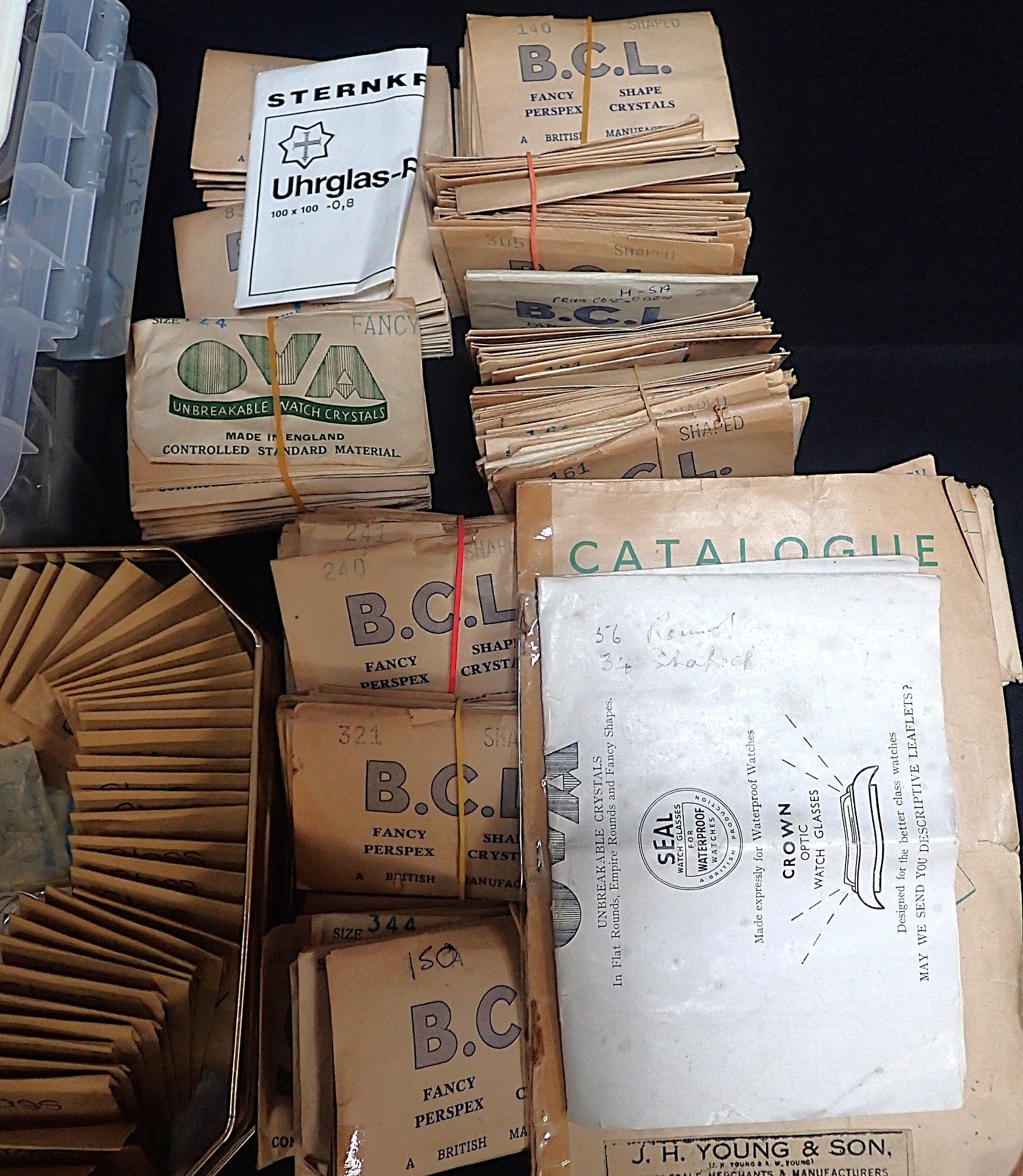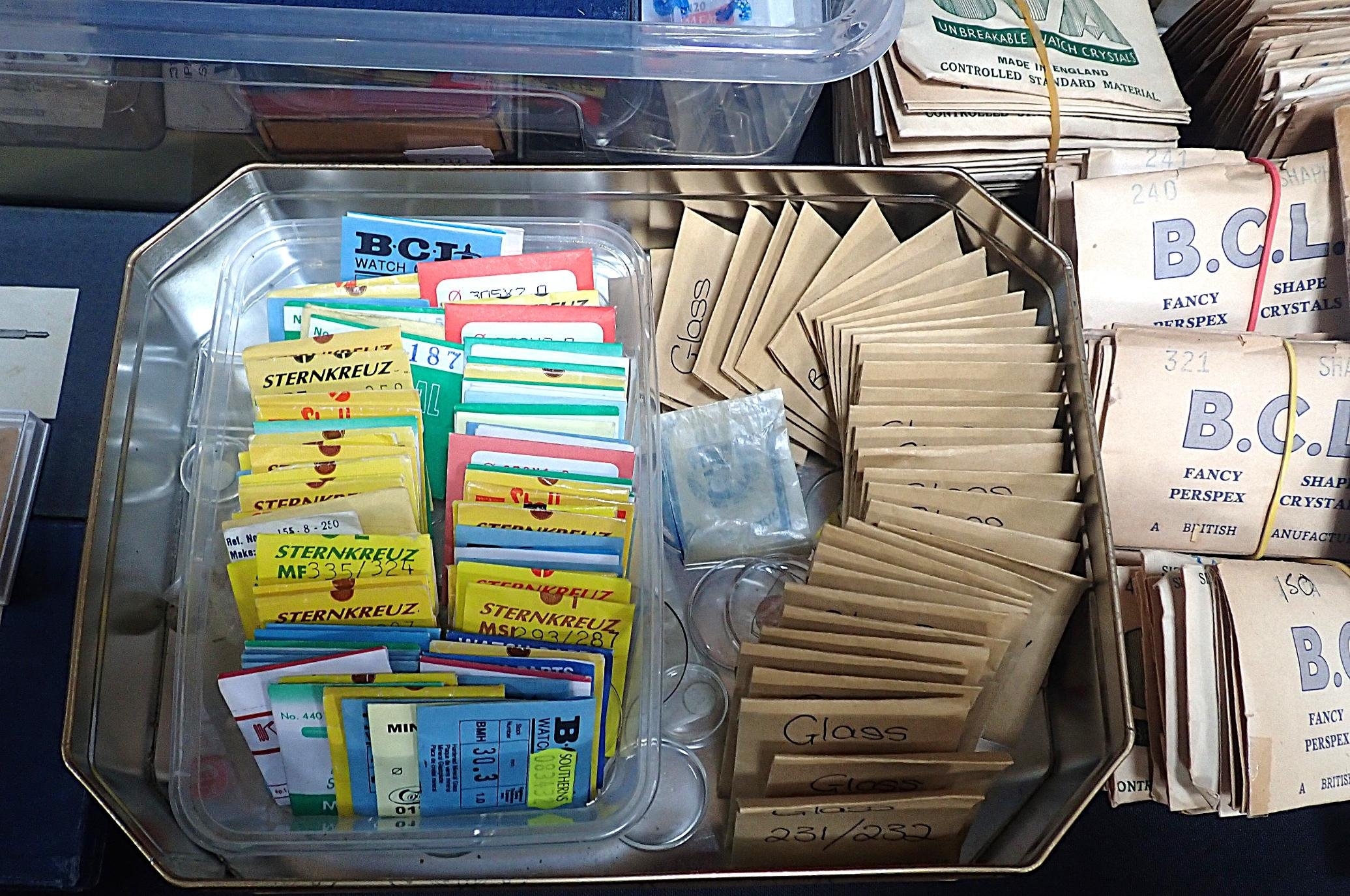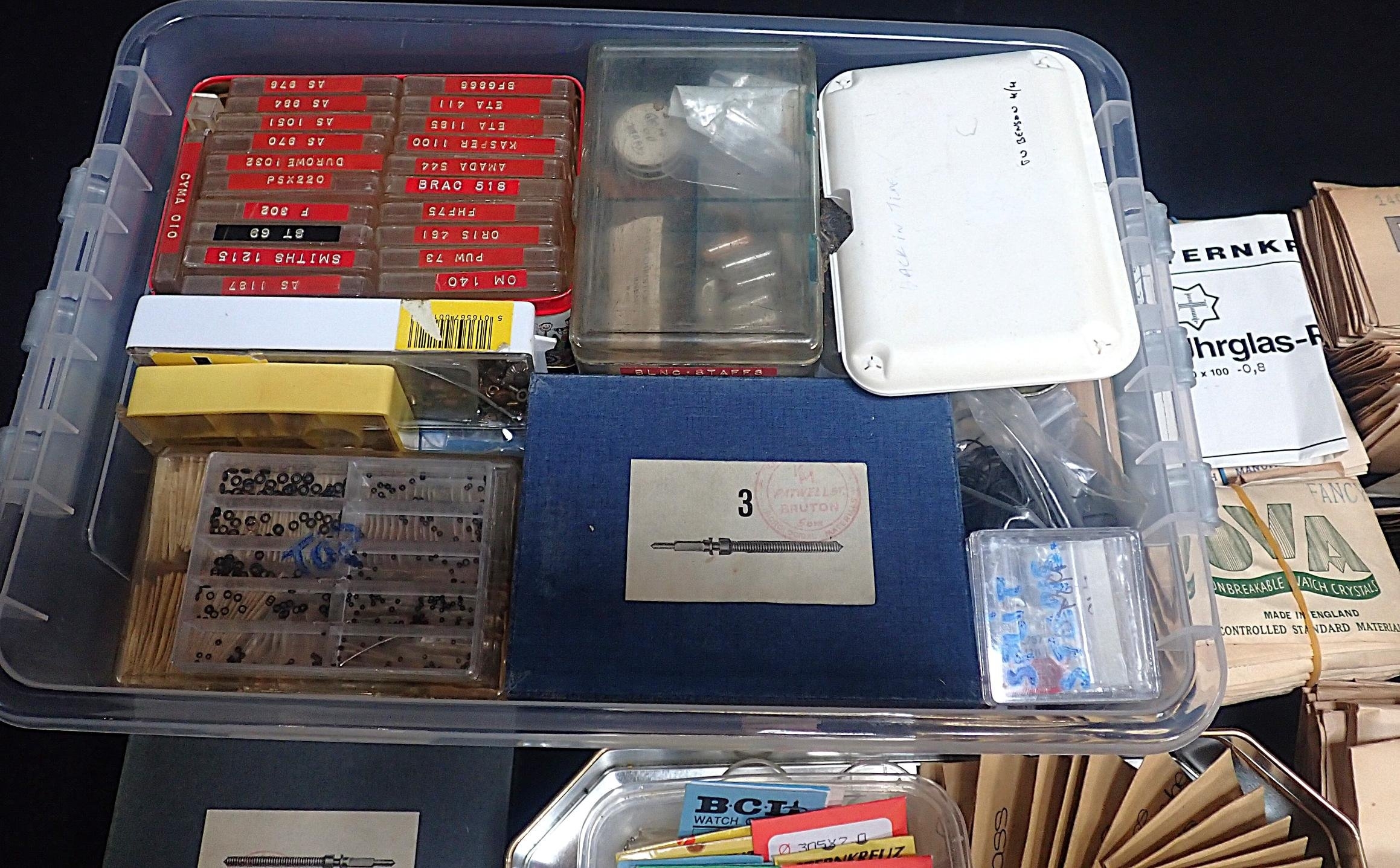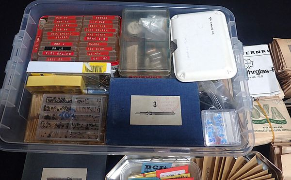 together with various watch and pocket watch hands, watch and pocket watch loops, and stems (a lot)