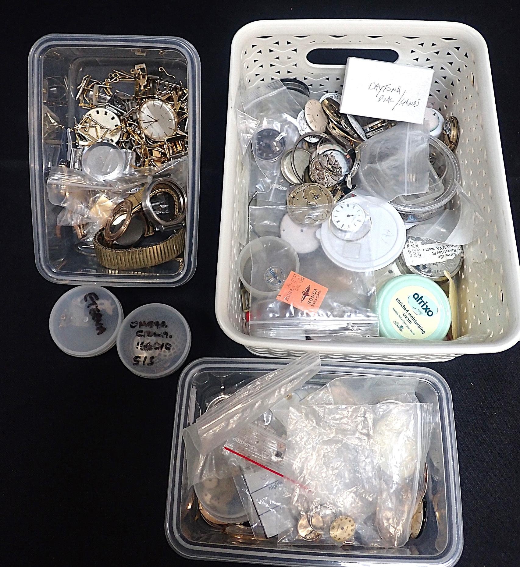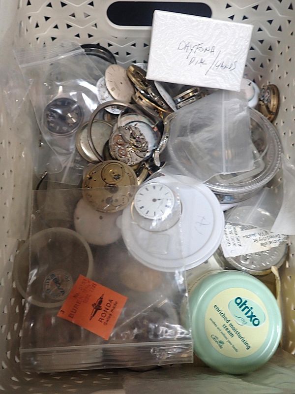 and watch parts, with a quantity of various other watch parts, movements and dials