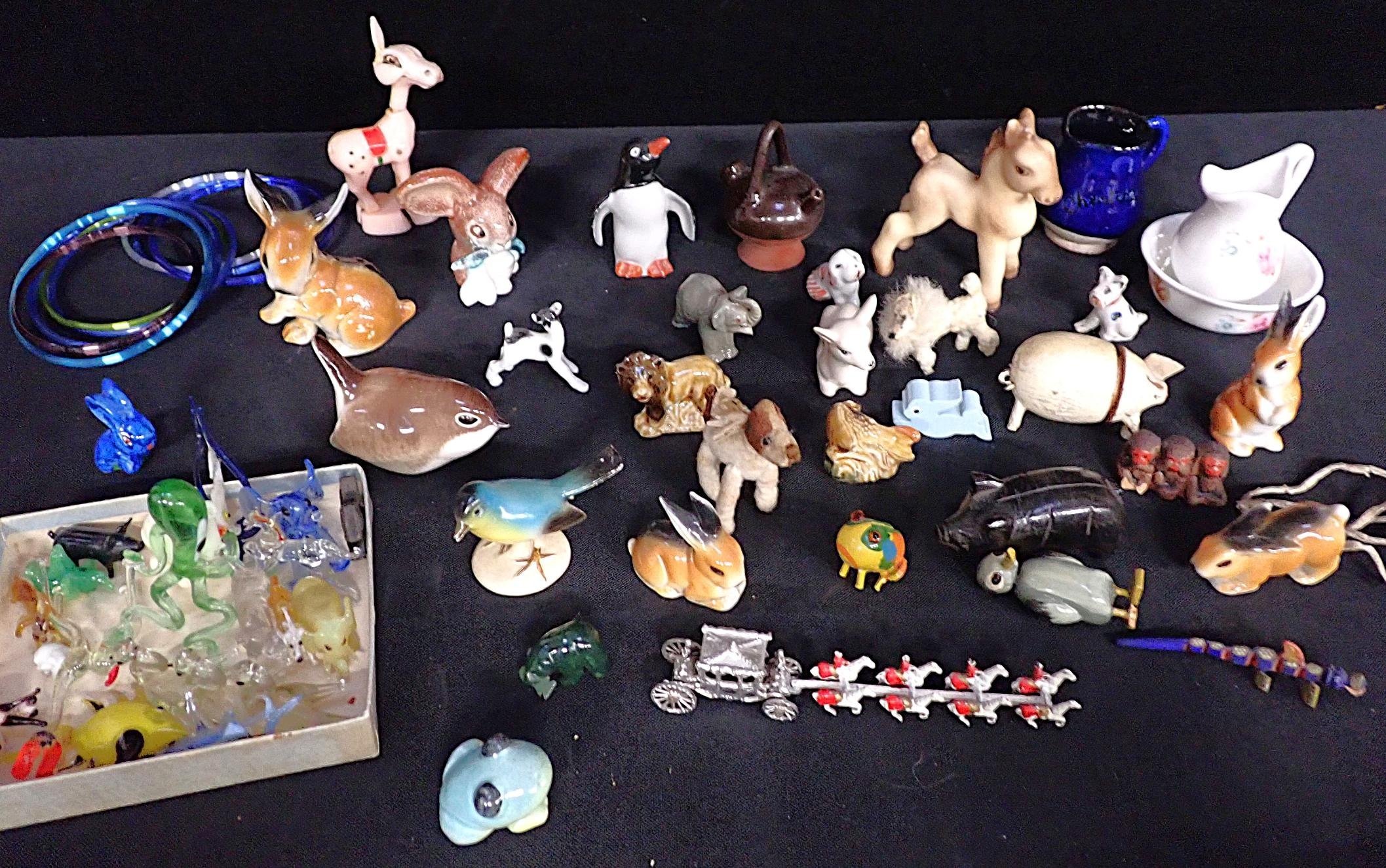 miniature animals in various materials, and other items