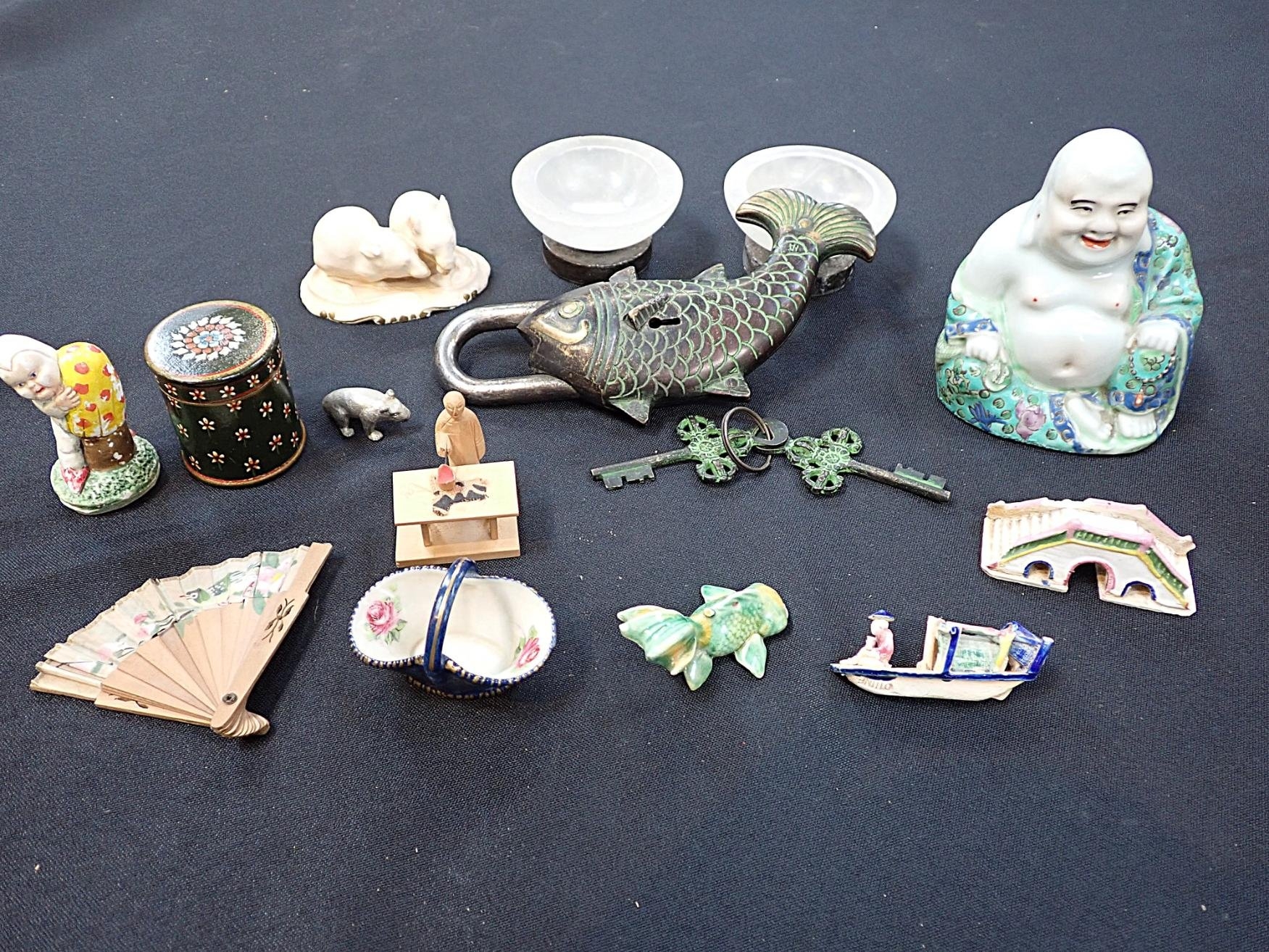 with two keys, 18cm long, a miniature Royal Worcester basket, and other small items