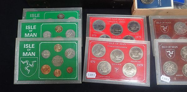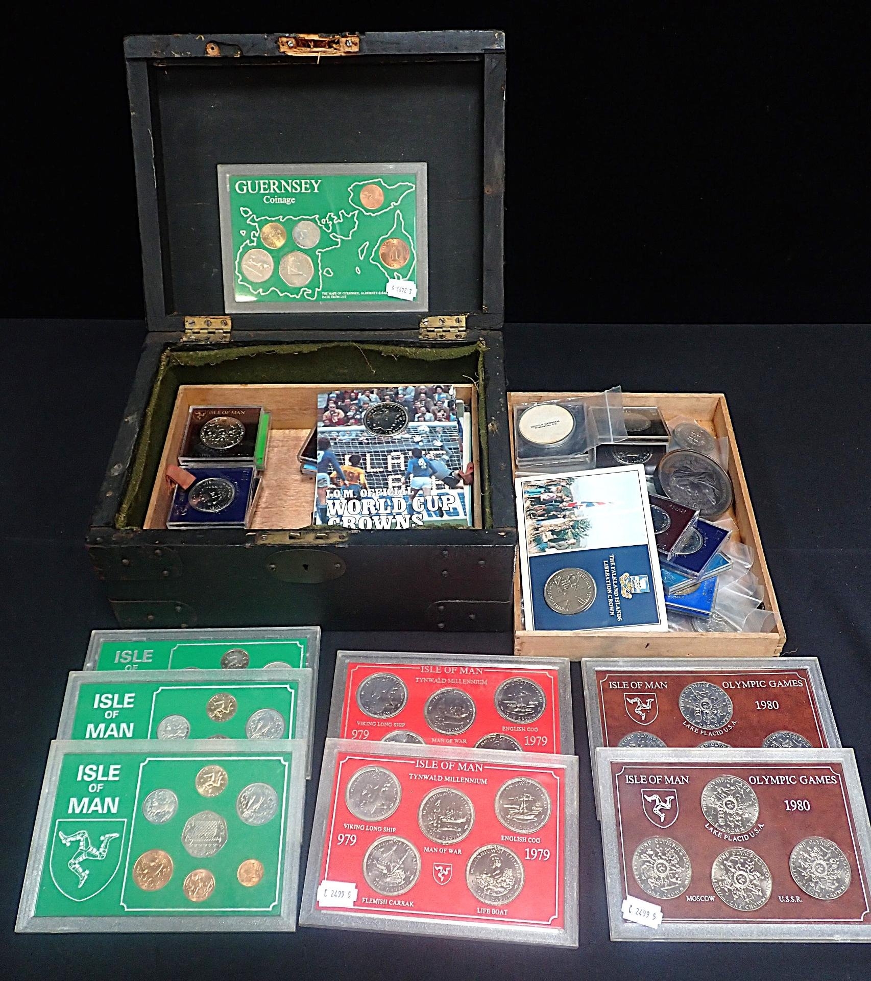 and other coins, including a bronze Victoria Diamond Jubilee medallion, and some cased sets, contained in a metal-bound box (some nicotine deposit)