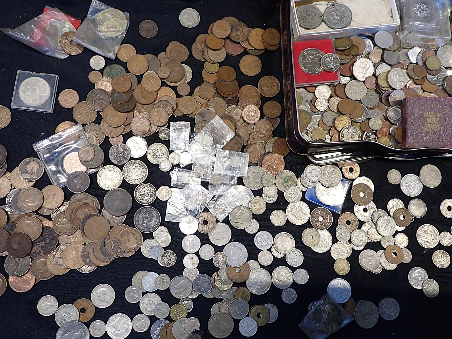 a 1923 half crown, 1927 Australian florin, other silver, an Isaac Newton Halfpenny token, and other mixed coins