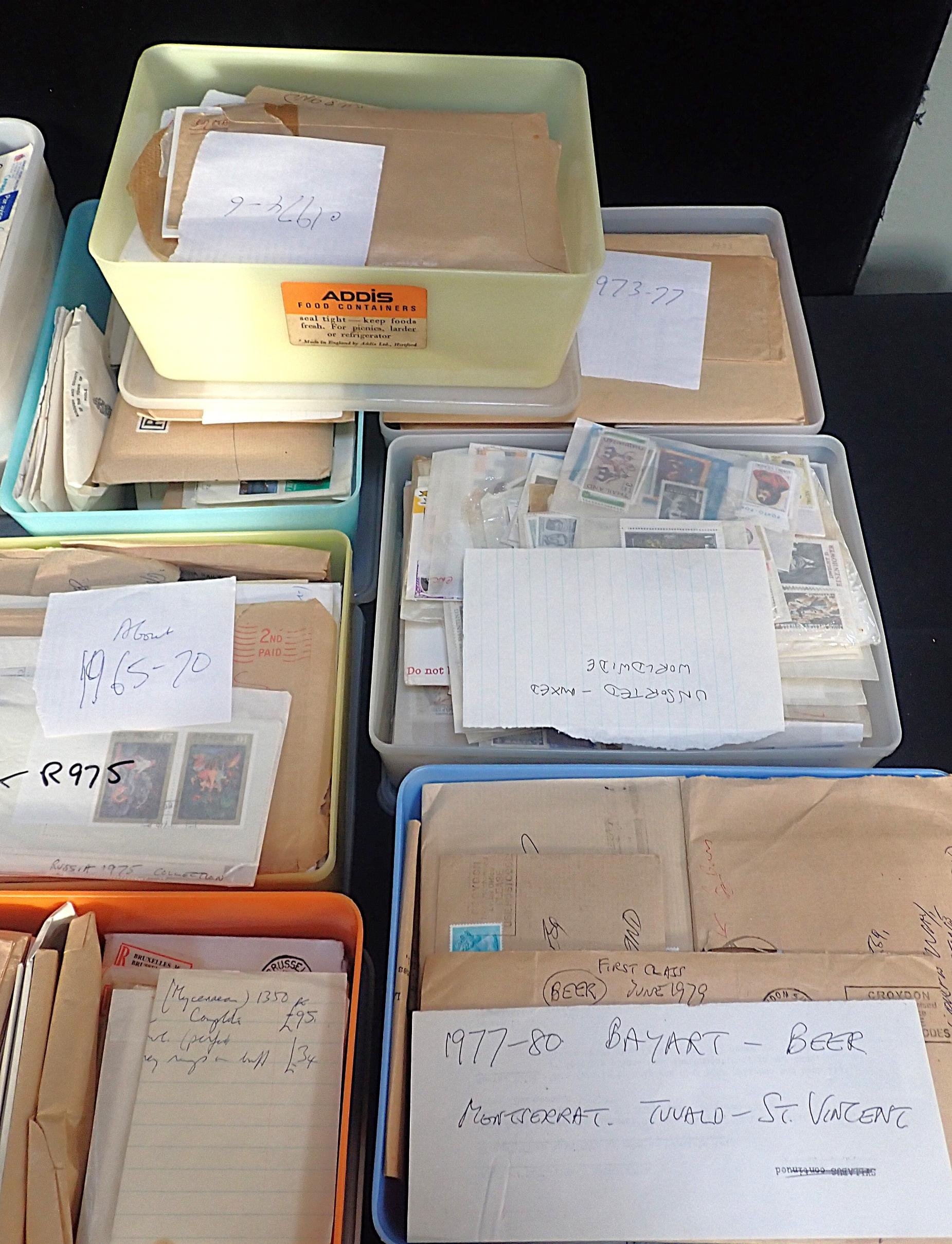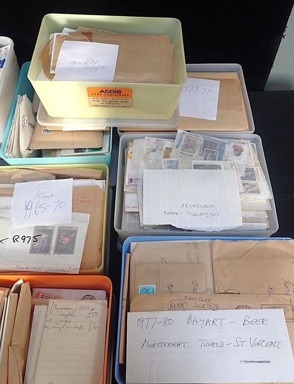 mint and used, mostly new issues as received in packets from 1960s and 1970s, thematic content with Art and Culture and much more (2 boxes)