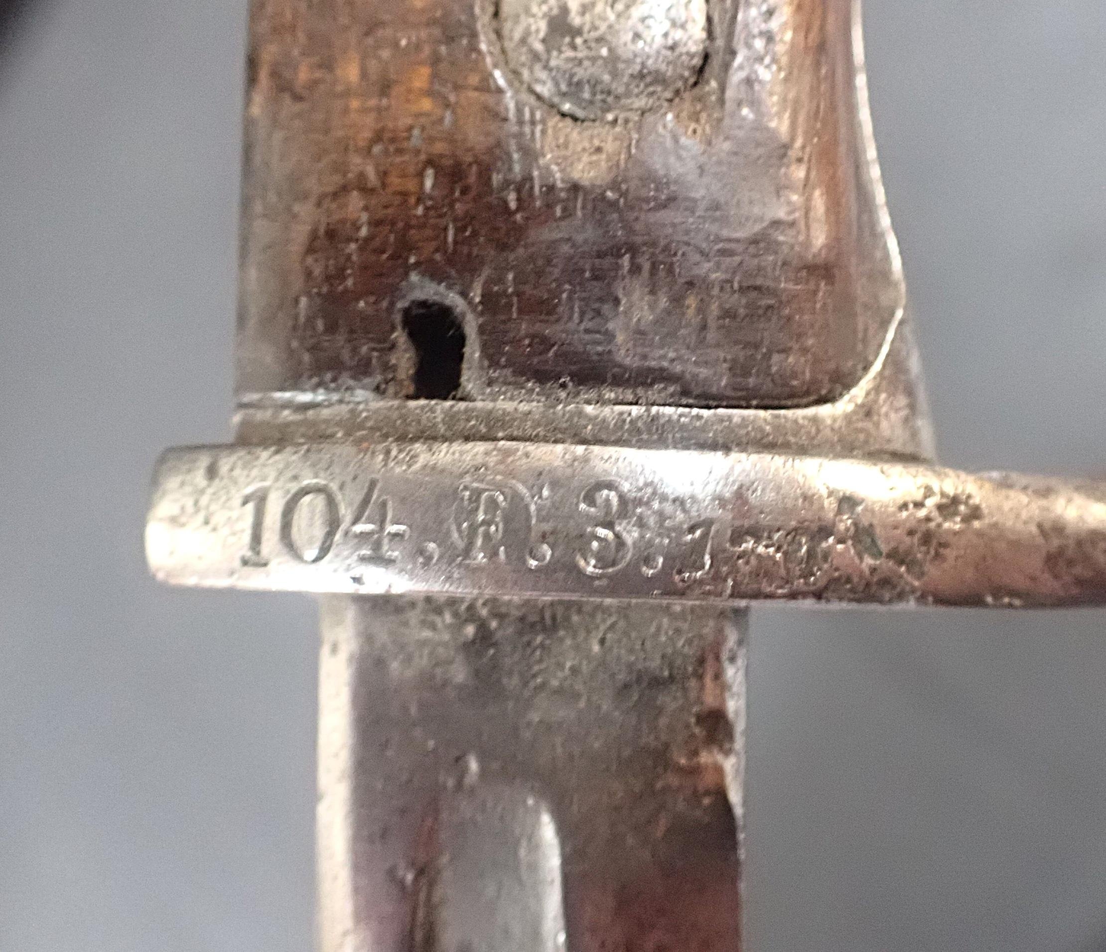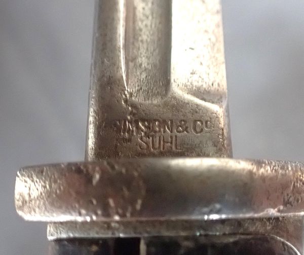 made by Simpsom & Co, Suhl, regimentally marked to the hilt 104.E.3.1.. (?)