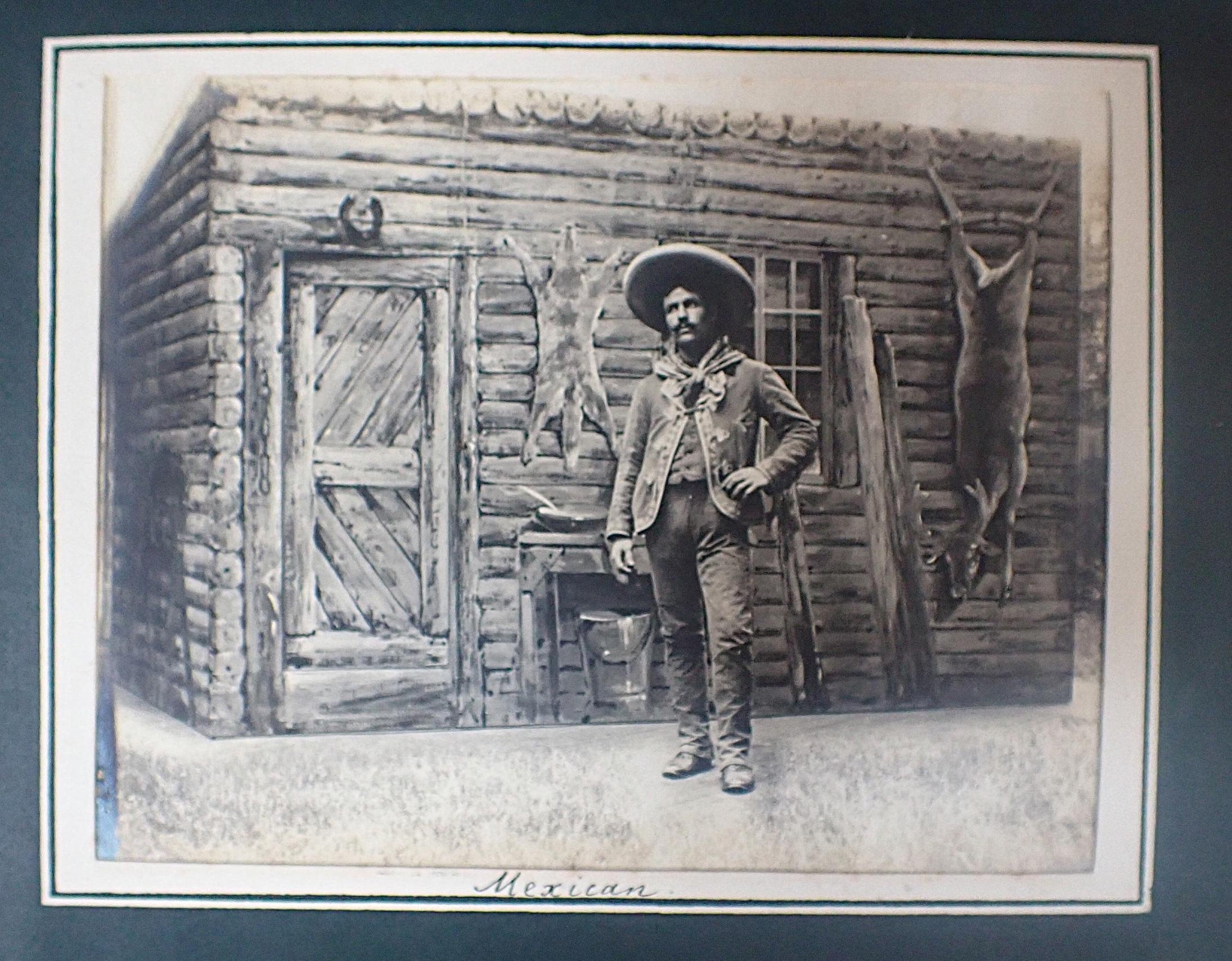 taken against painted backdrops, and annotated, probably William 'Buffalo Bill' Cody's 'Wild West Show', at Olympia, including; 'A group at Olympia, Feb 1903', 'Philip, the biggest Indian at Olympia', etc