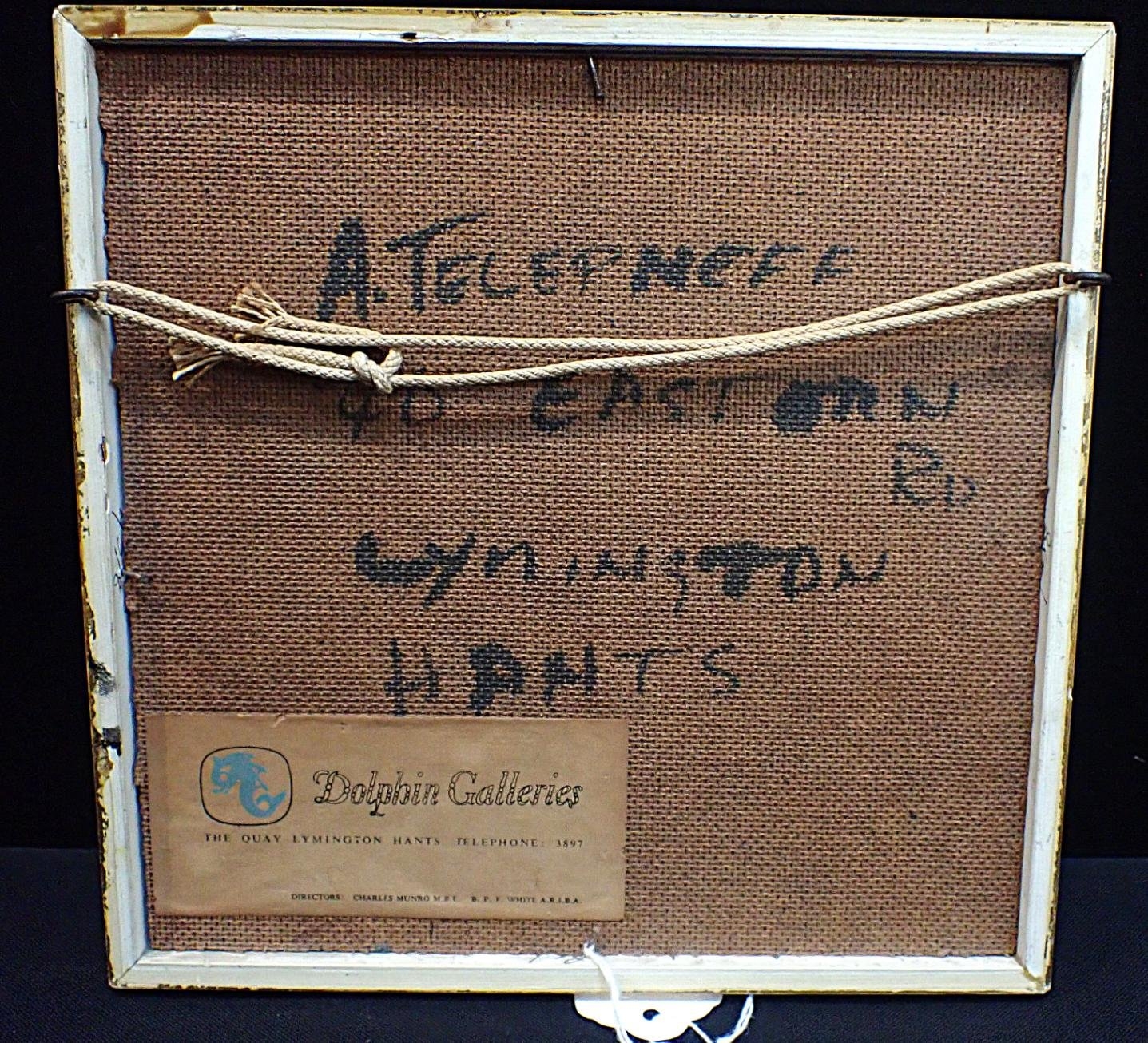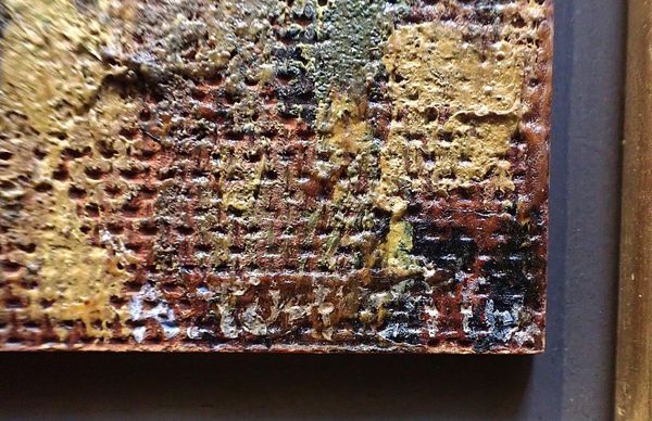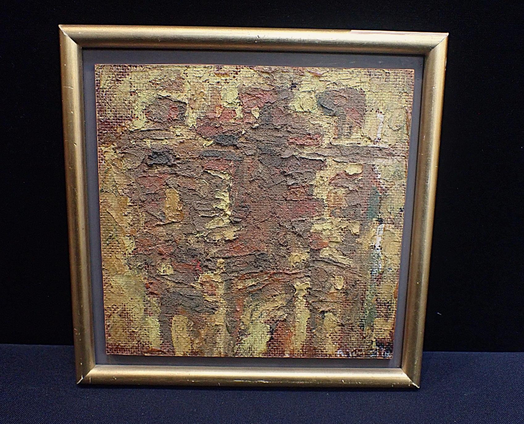 impasto oil on board, framed 20 x 20cm, signed, with further inscription and Dolphin Galleries label to back