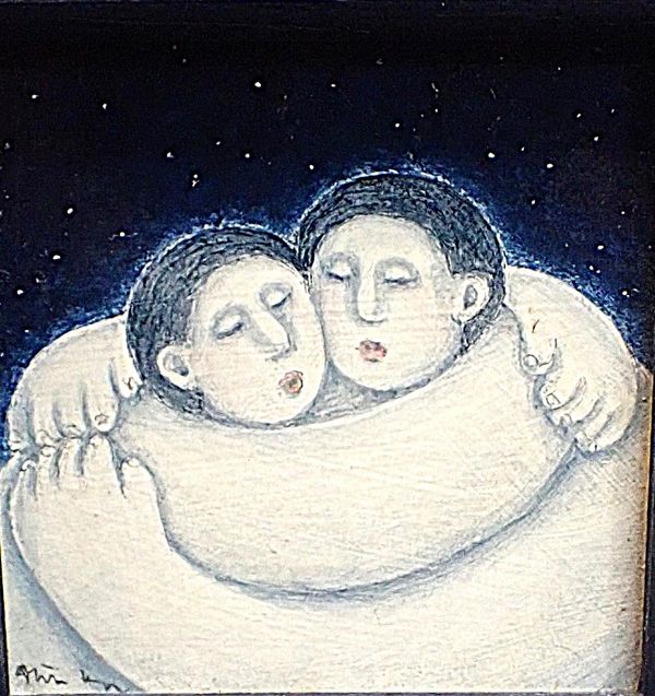 With 'She Rises with the Moon' and 'You Me and the Stars', oil on board, largest 33.5 x 31cm (3)