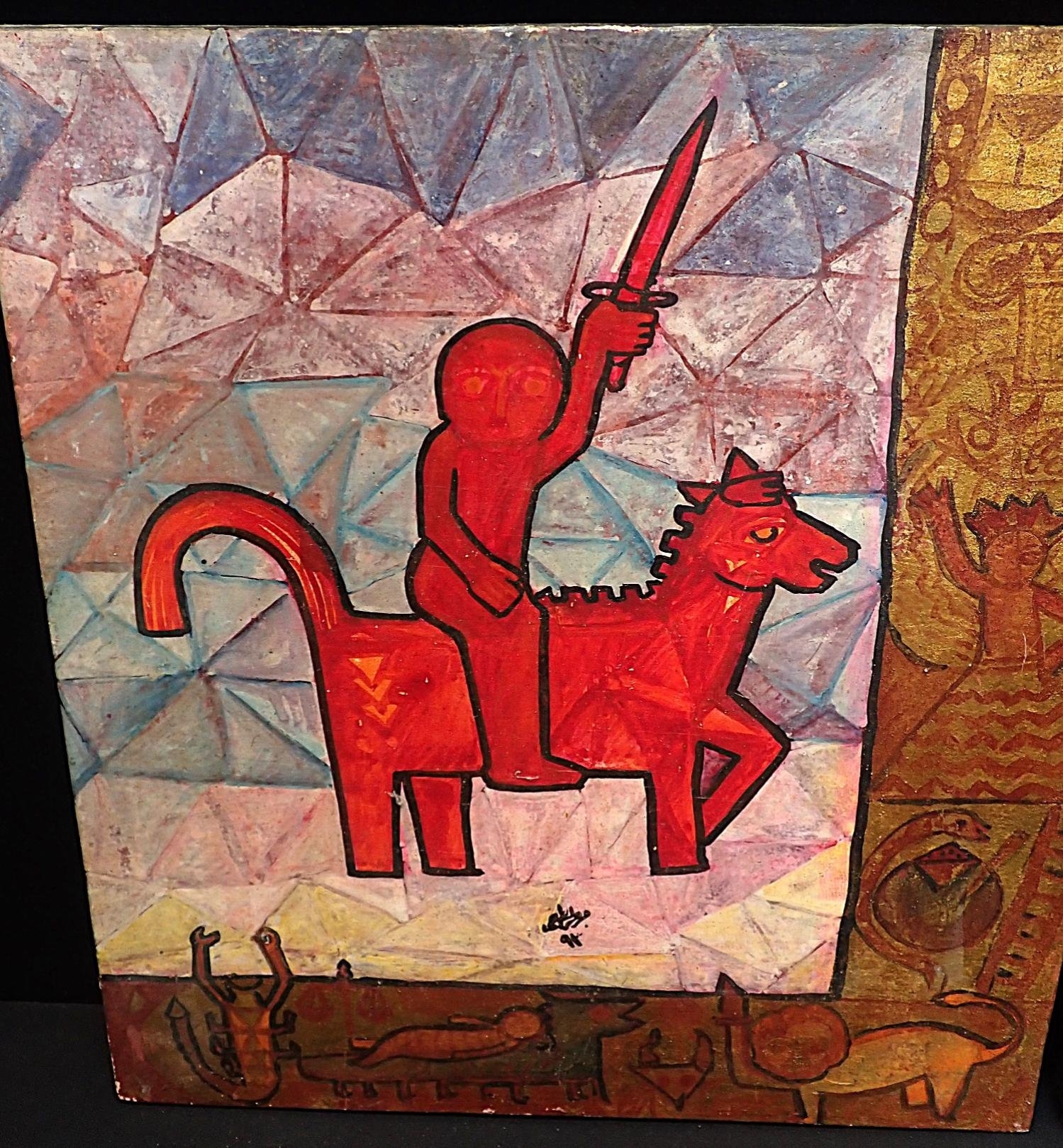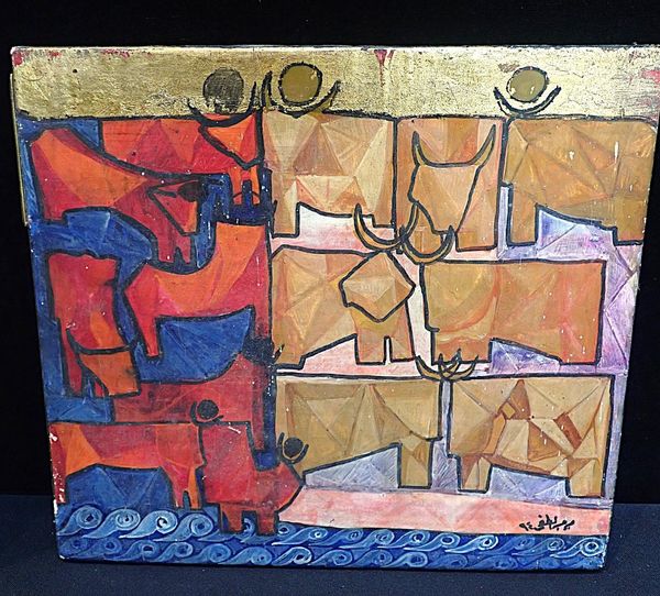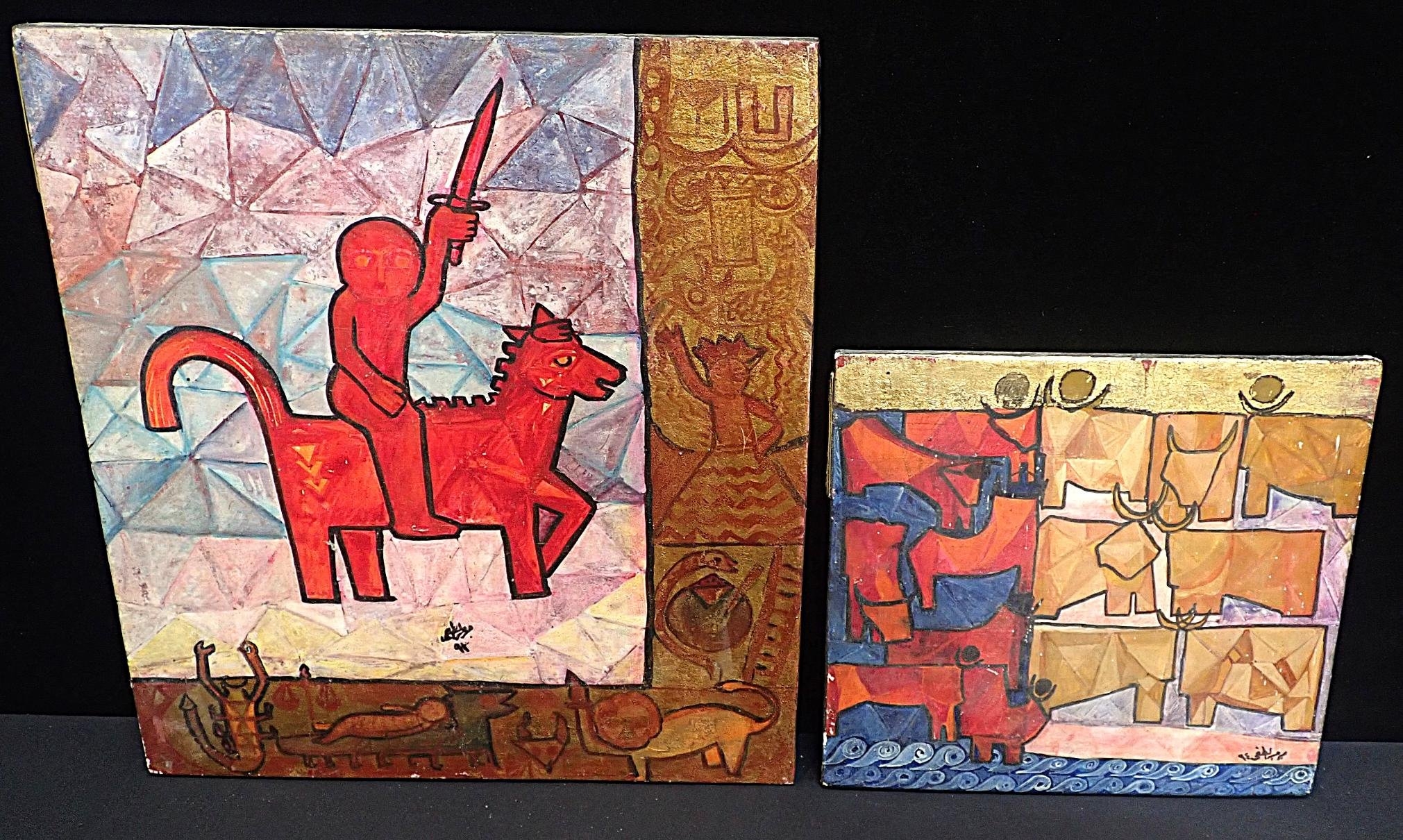 Oil on board, 44 x 40cm, with 'Red and Brown Oxen' oil on board (2)