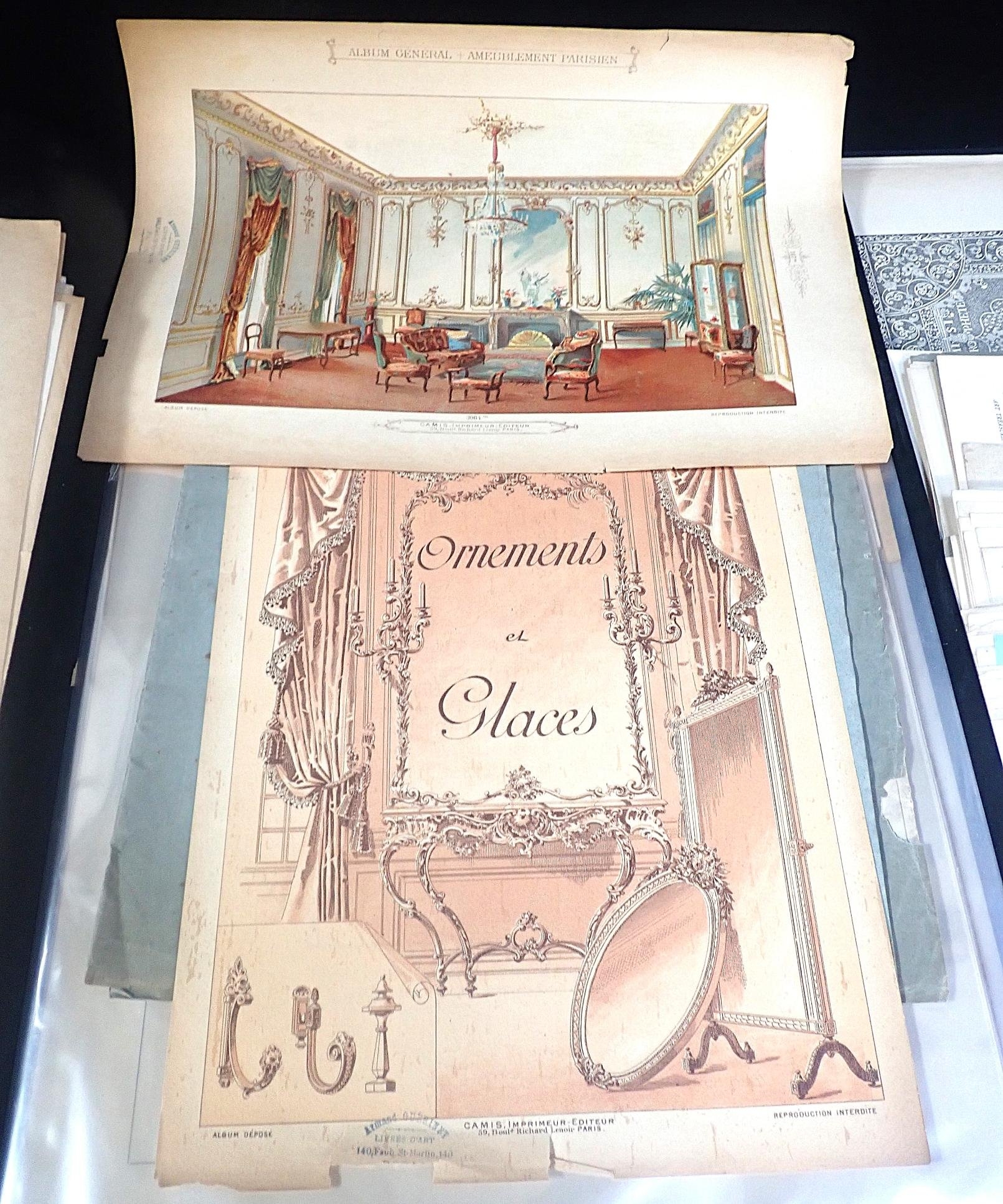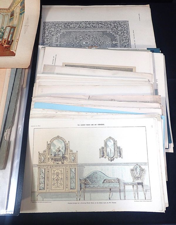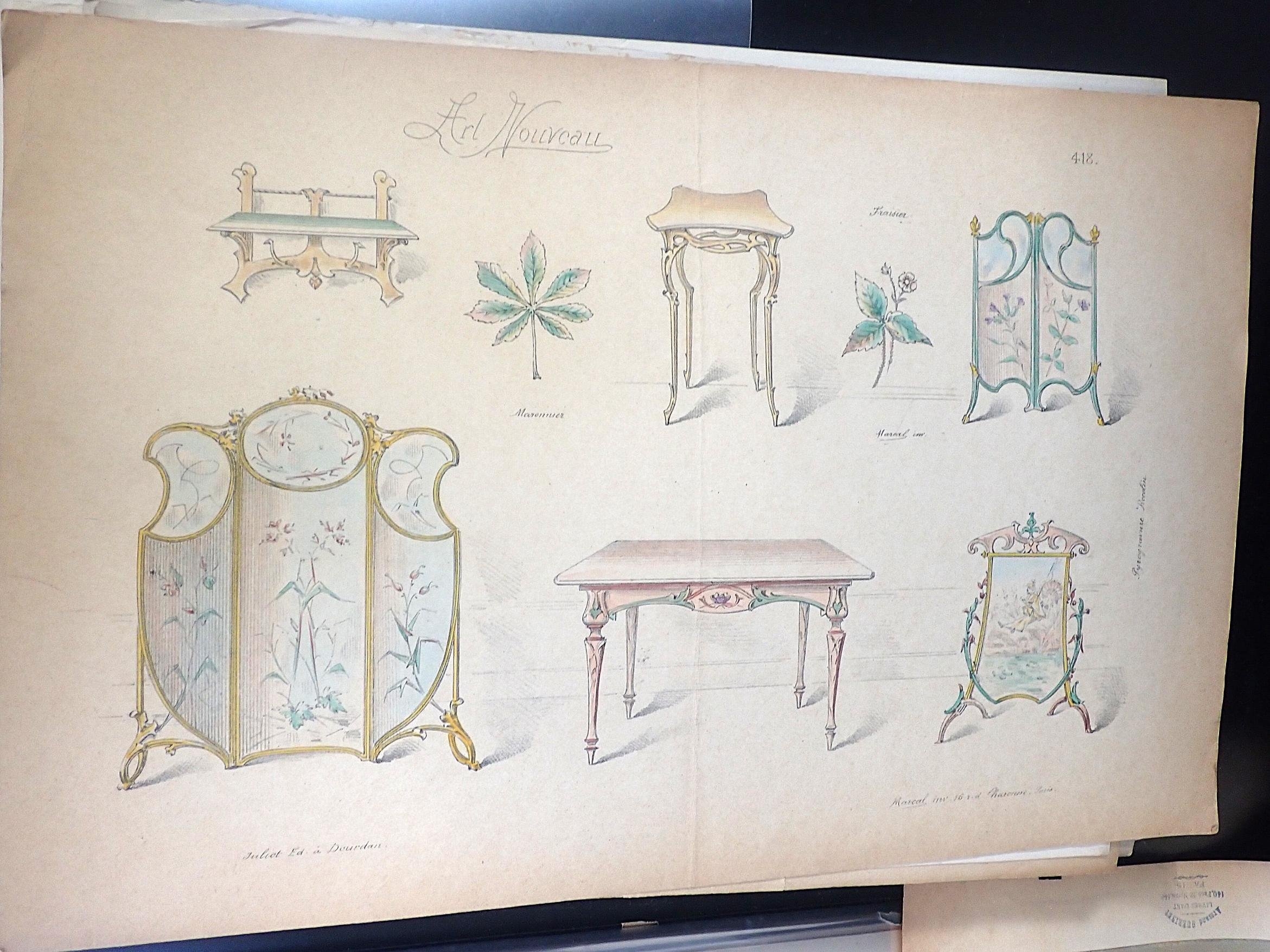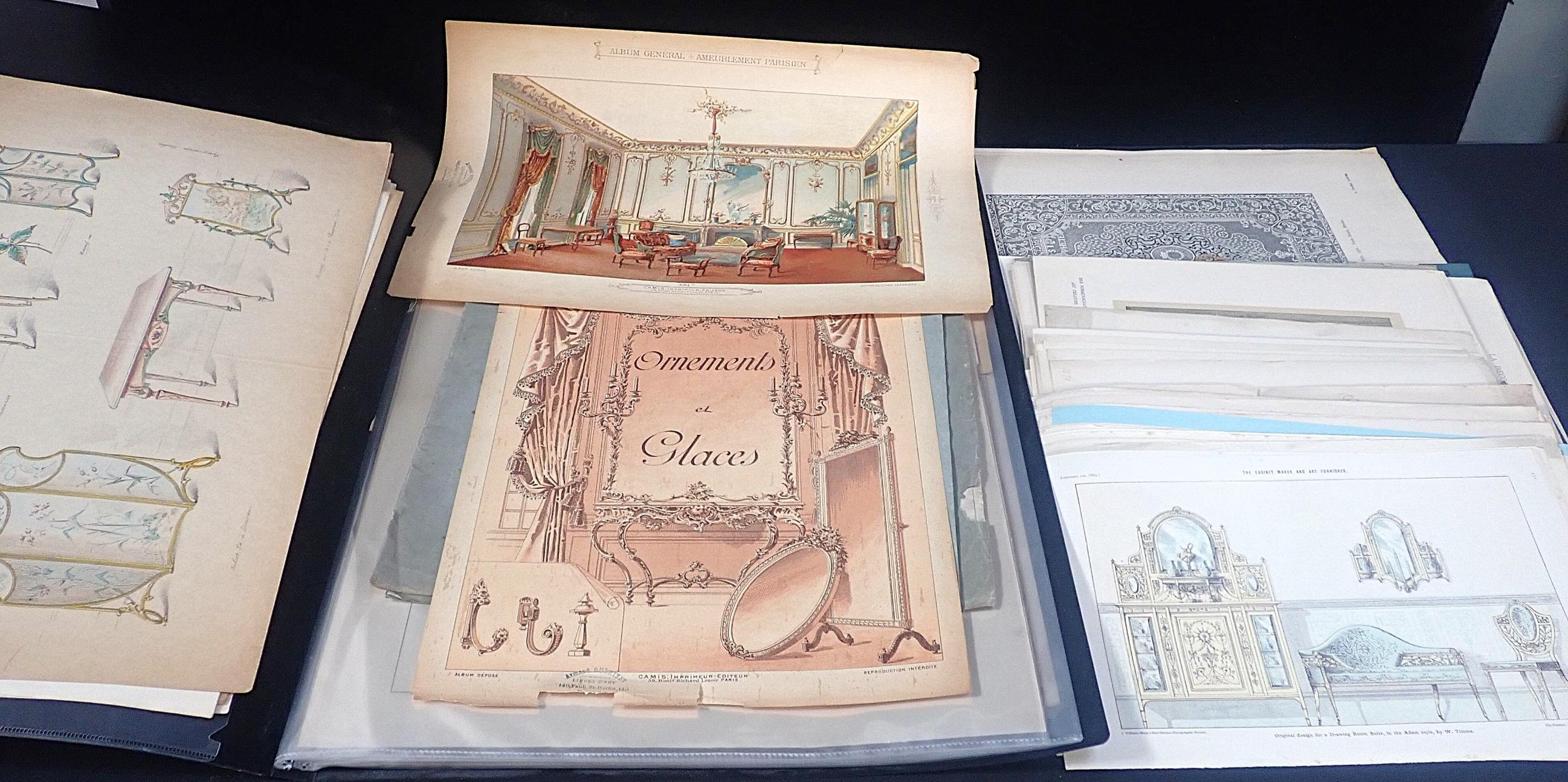 many French, late 19th century, including designs of Art Nouveau furniture, contained in a folio and a box