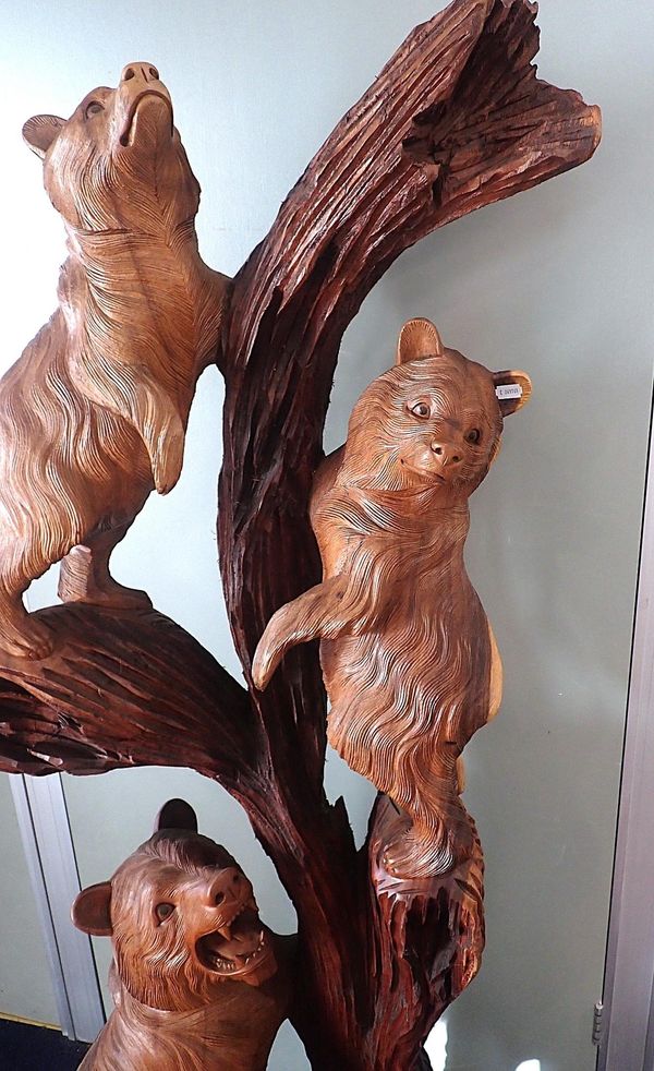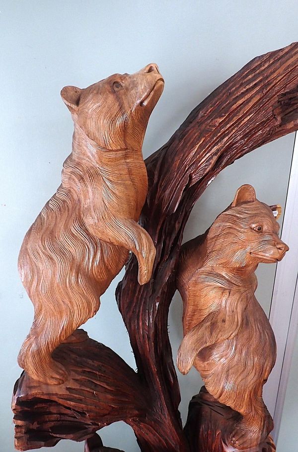 A LARGE CARVED WOODEN BLACK FOREST STYLE GROUP OF BEARS