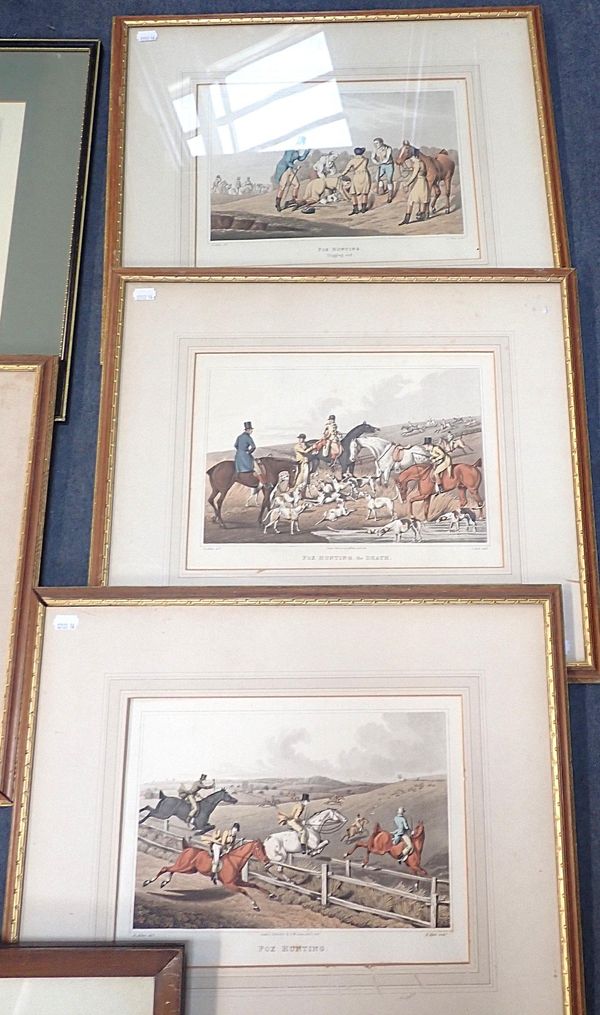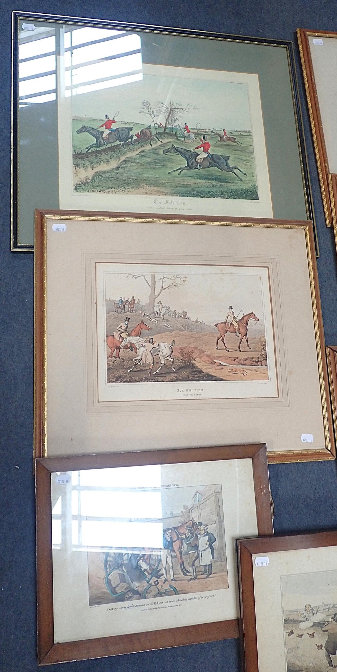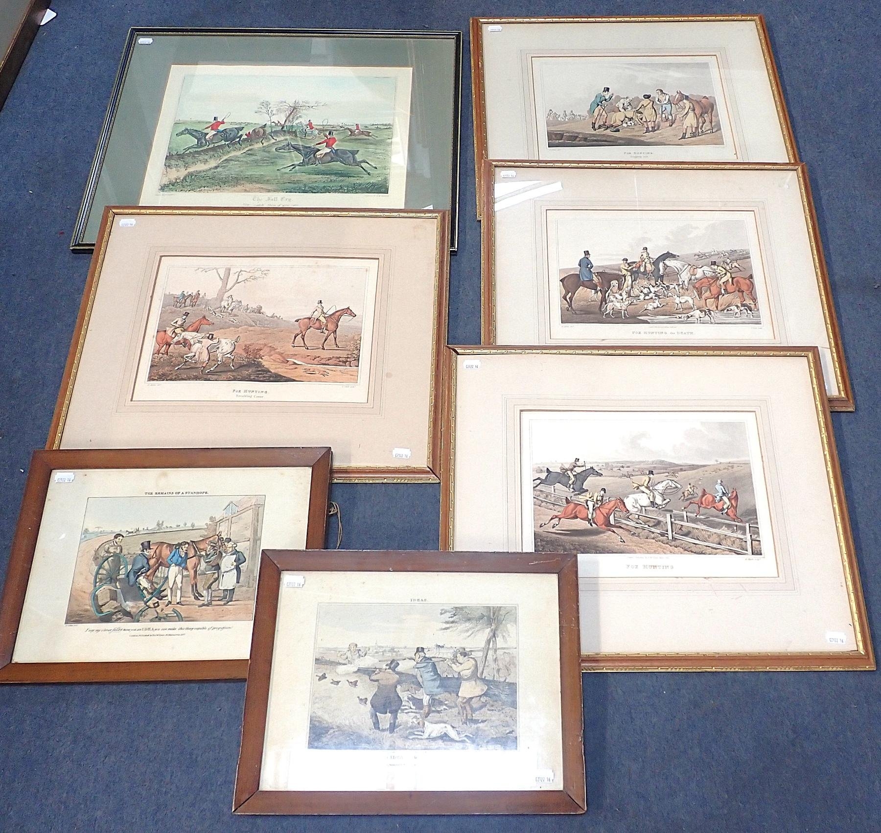 etching with hand colouring, 27cm x 26.5cm, with 'Ideas' and 'The Remains of a Stanhope' and four Fox hunting scenes (7)